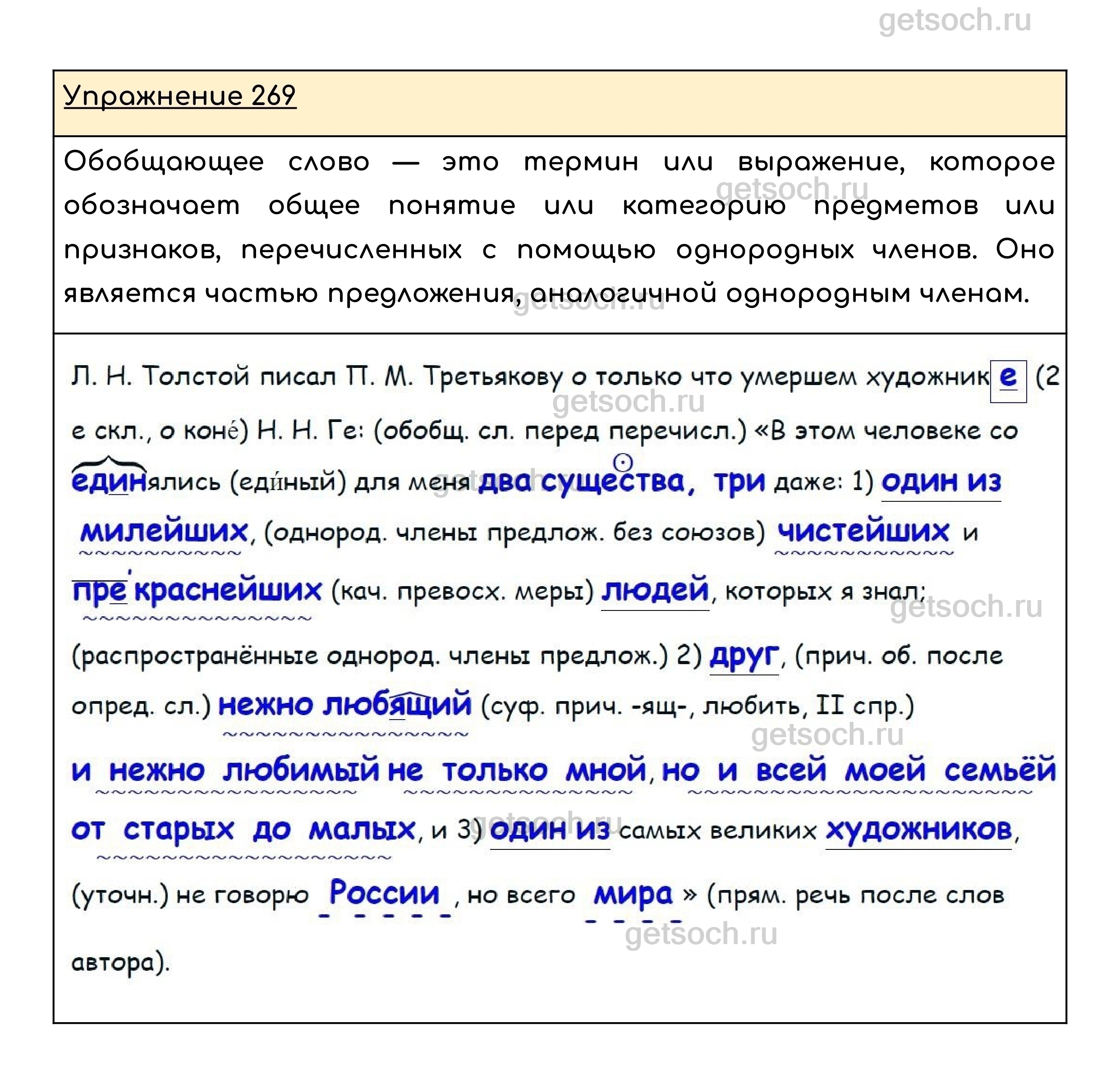 Рассмотрим ответы на Упражнение 269 из учебника по русскому языку для 8 класса Ладыженской