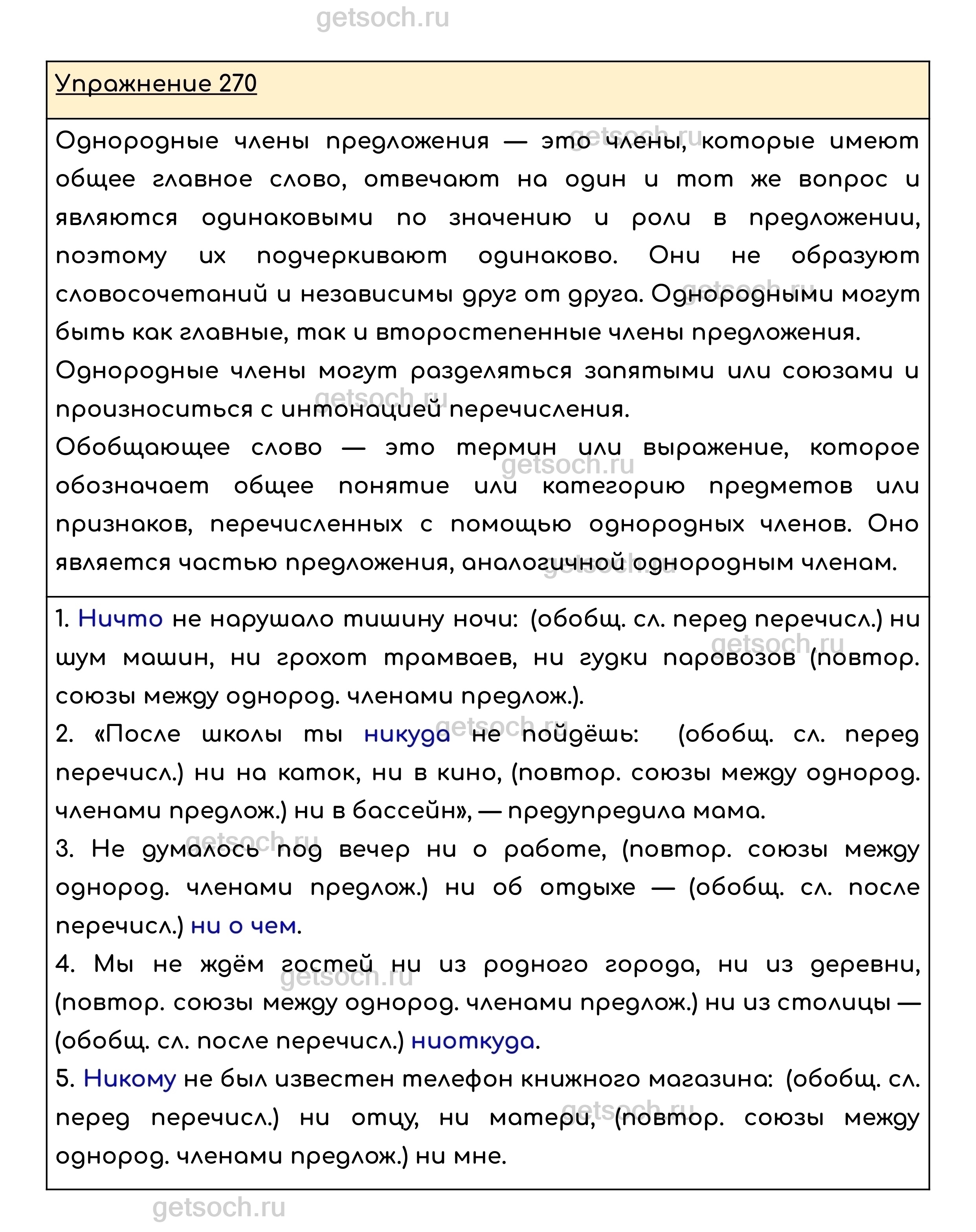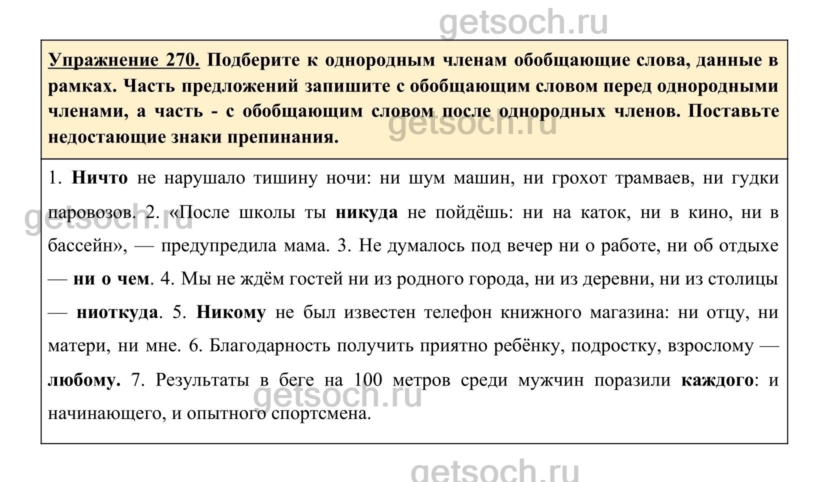 Рассмотрим ответы на Упражнение 270 из учебника по русскому языку для 8 класса Ладыженской