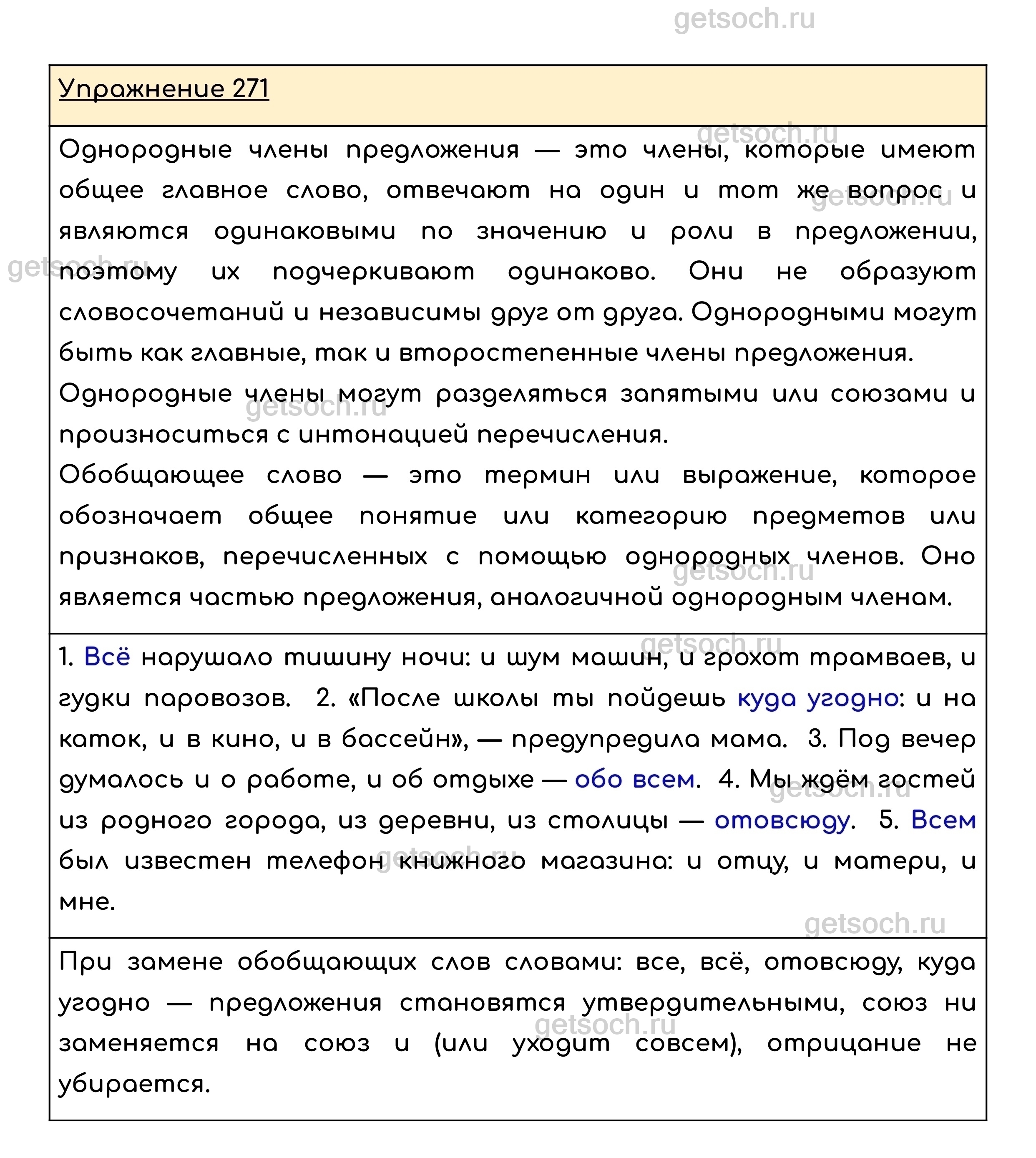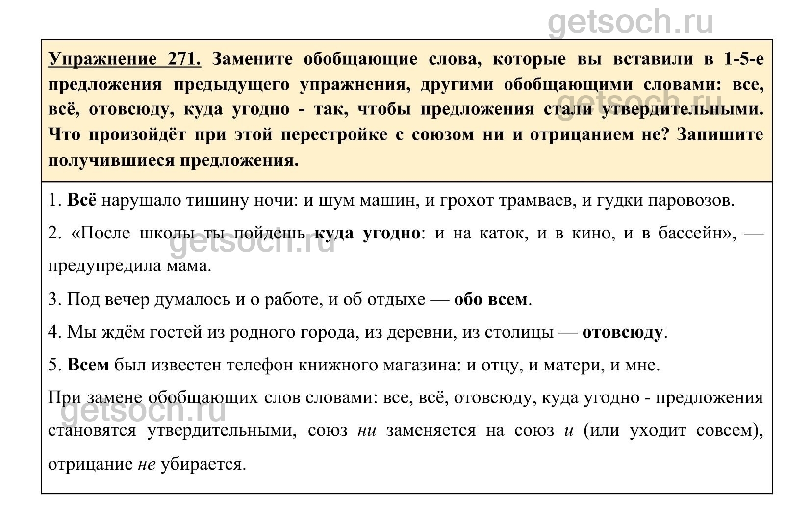 Рассмотрим ответы на Упражнение 271 из учебника по русскому языку для 8 класса Ладыженской