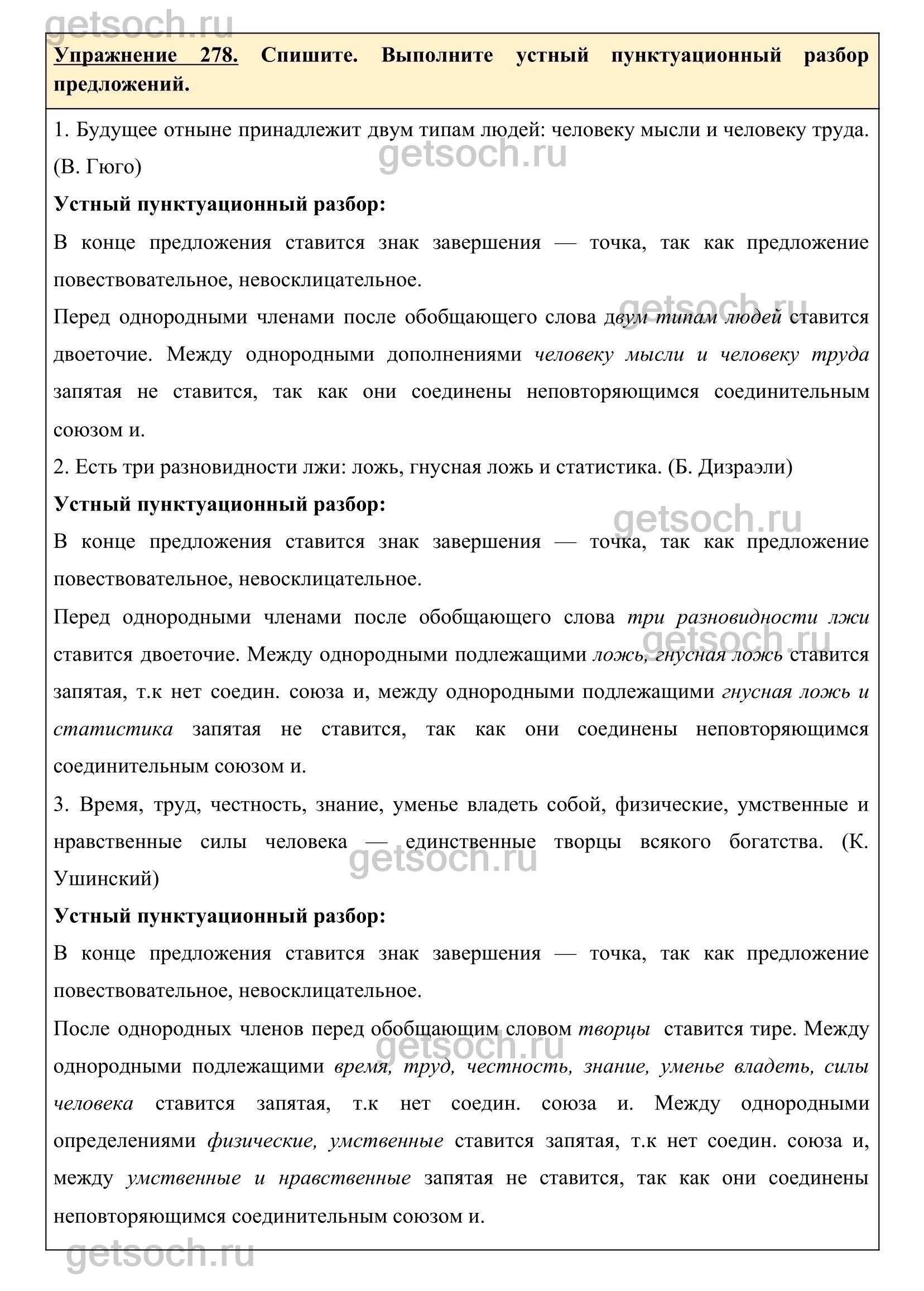 Упражнение 278. Спишите. Выполните устный пунктуационный разбор предложений.