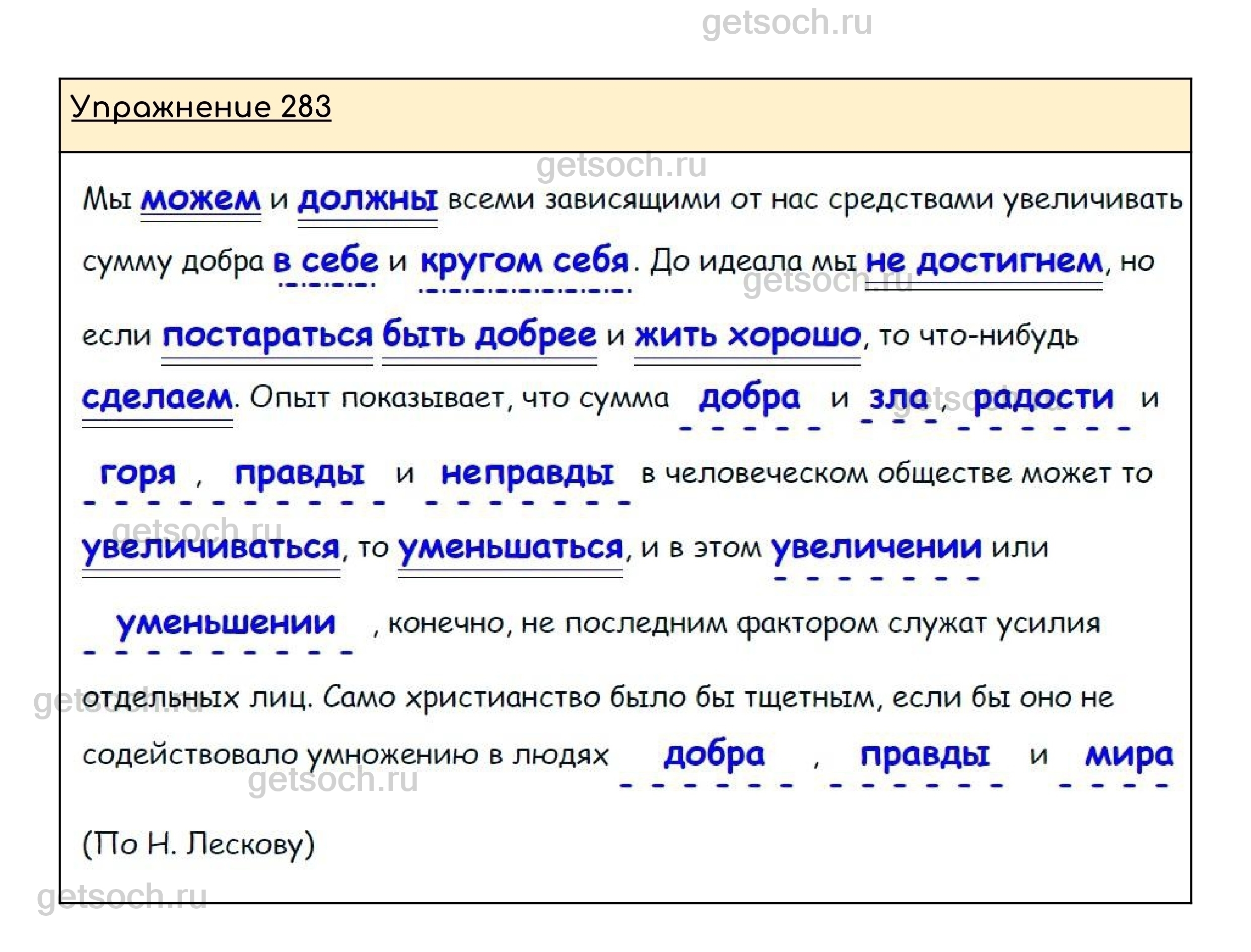 Рассмотрим ответы на Упражнение 283 из учебника по русскому языку для 8 класса Ладыженской