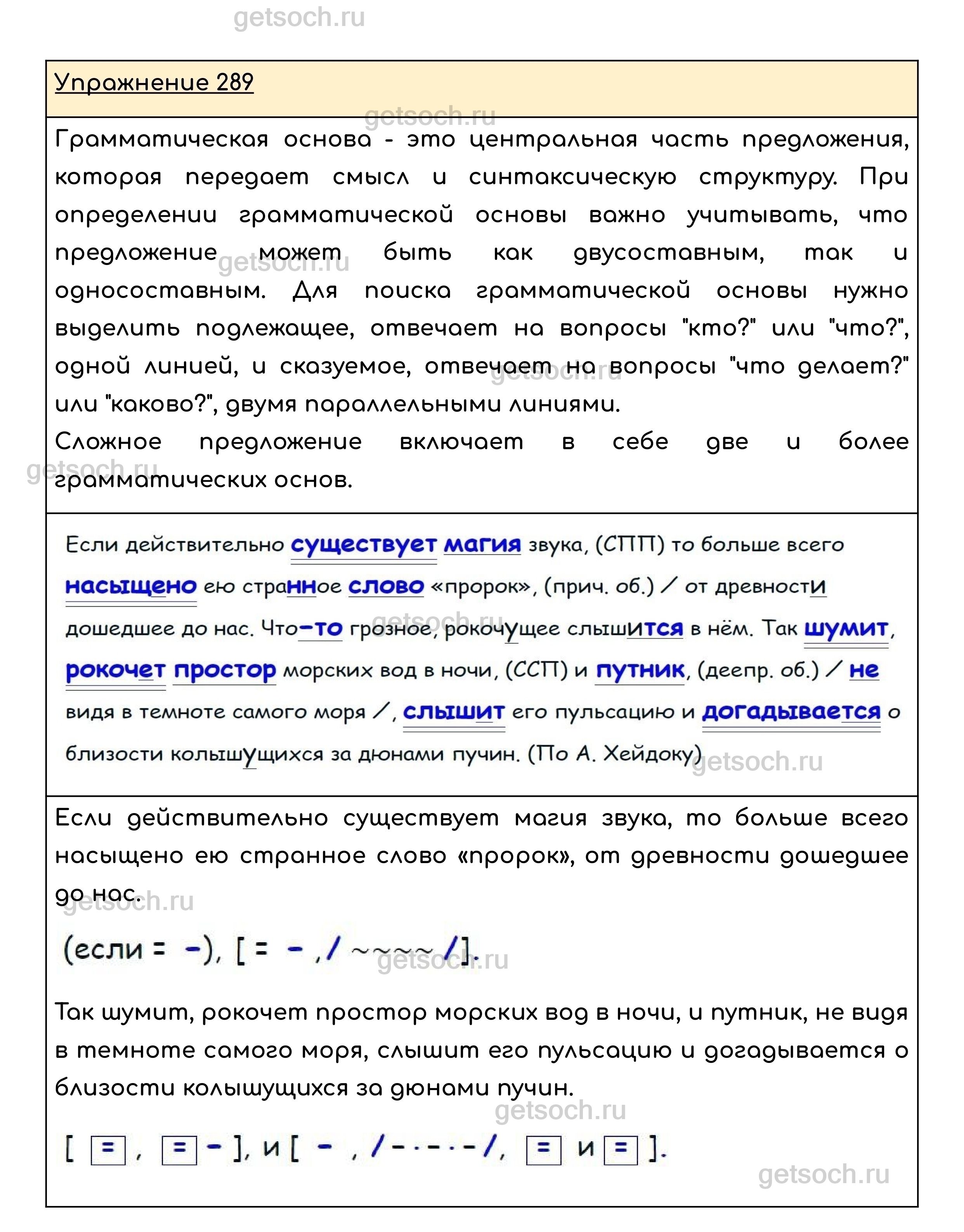 Рассмотрим ответы на Упражнение 289 из учебника по русскому языку для 8 класса Ладыженской