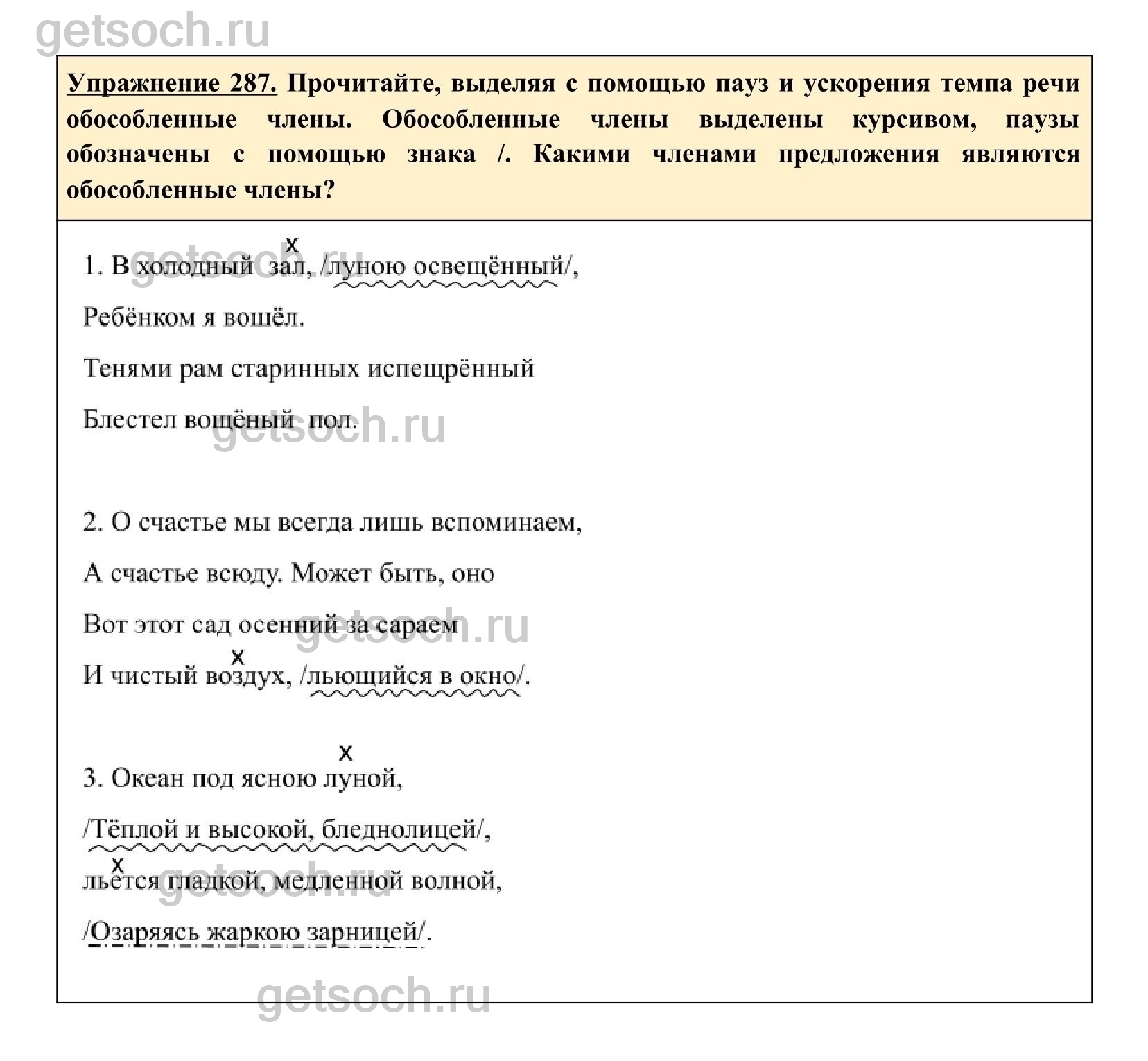 Упражнение 289. Спишите, подчёркивая грамматические основы сложных предложений. Расставьте пропущенные запятые, разделяющие простые предложения в сложном и выделяющие обособленные второстепенные члены. Обозначьте паузы, которые выделяют обособленные члены.