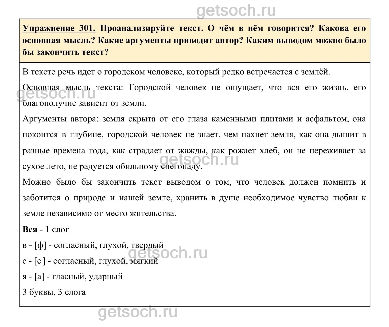 Упражнение 301. Проанализируйте текст. О чём в нём говорится? Какова его основная мысль? Какие аргументы приводит автор? Каким выводом можно было бы закончить текст?
