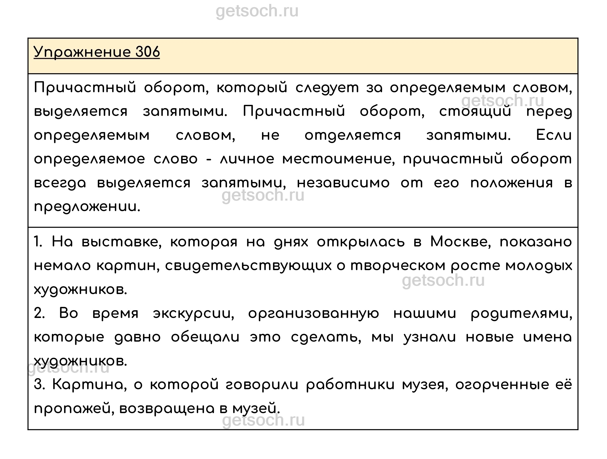Рассмотрим ответы на Упражнение 306 из учебника по русскому языку для 8 класса Ладыженской