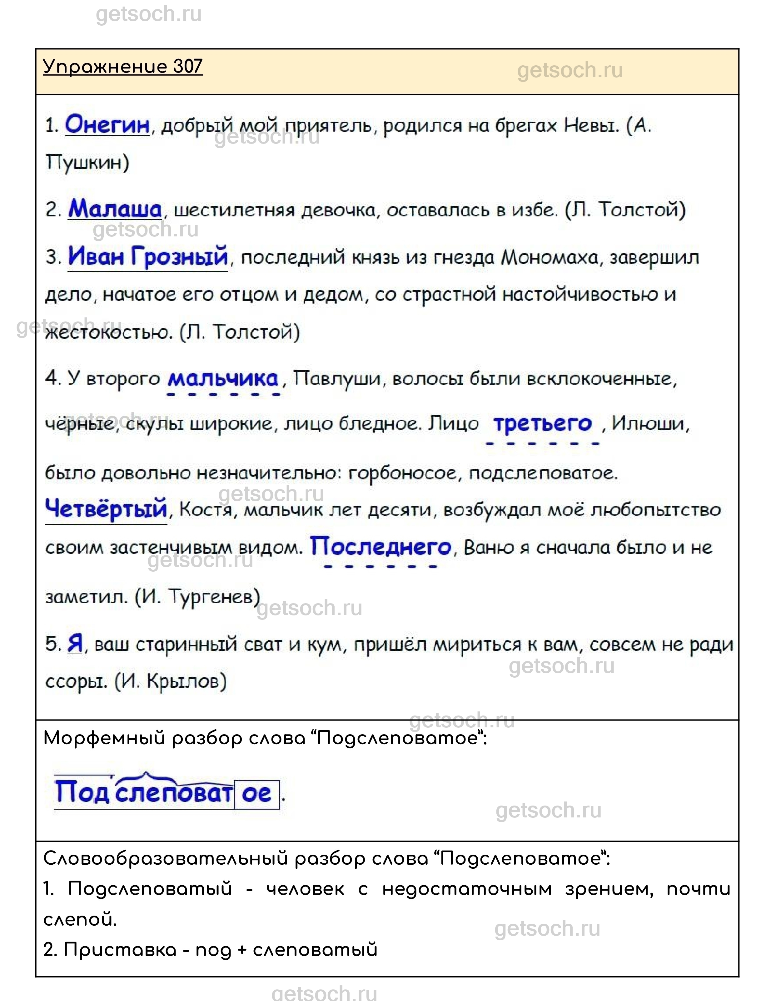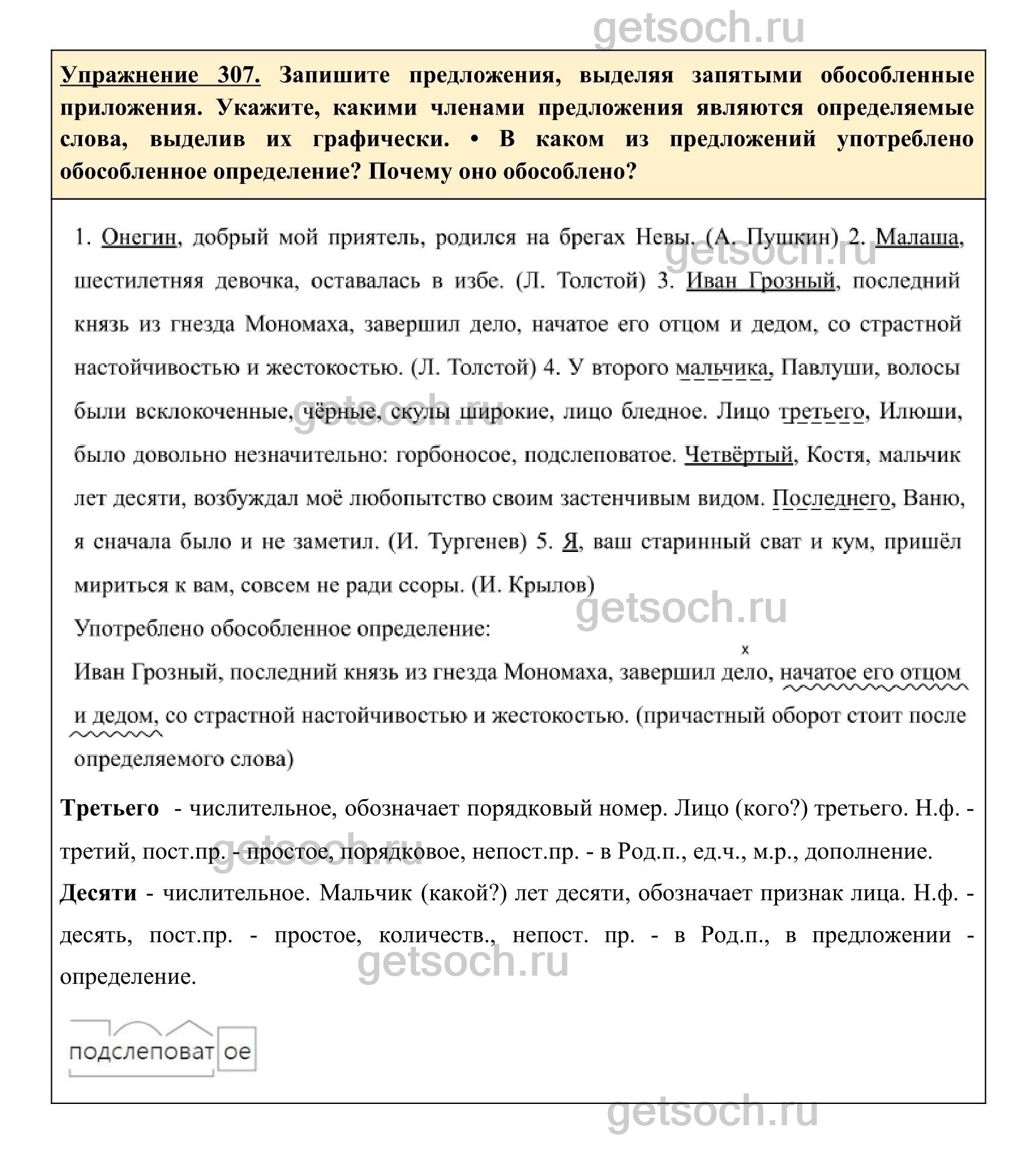 Рассмотрим ответы на Упражнение 307 из учебника по русскому языку для 8 класса Ладыженской