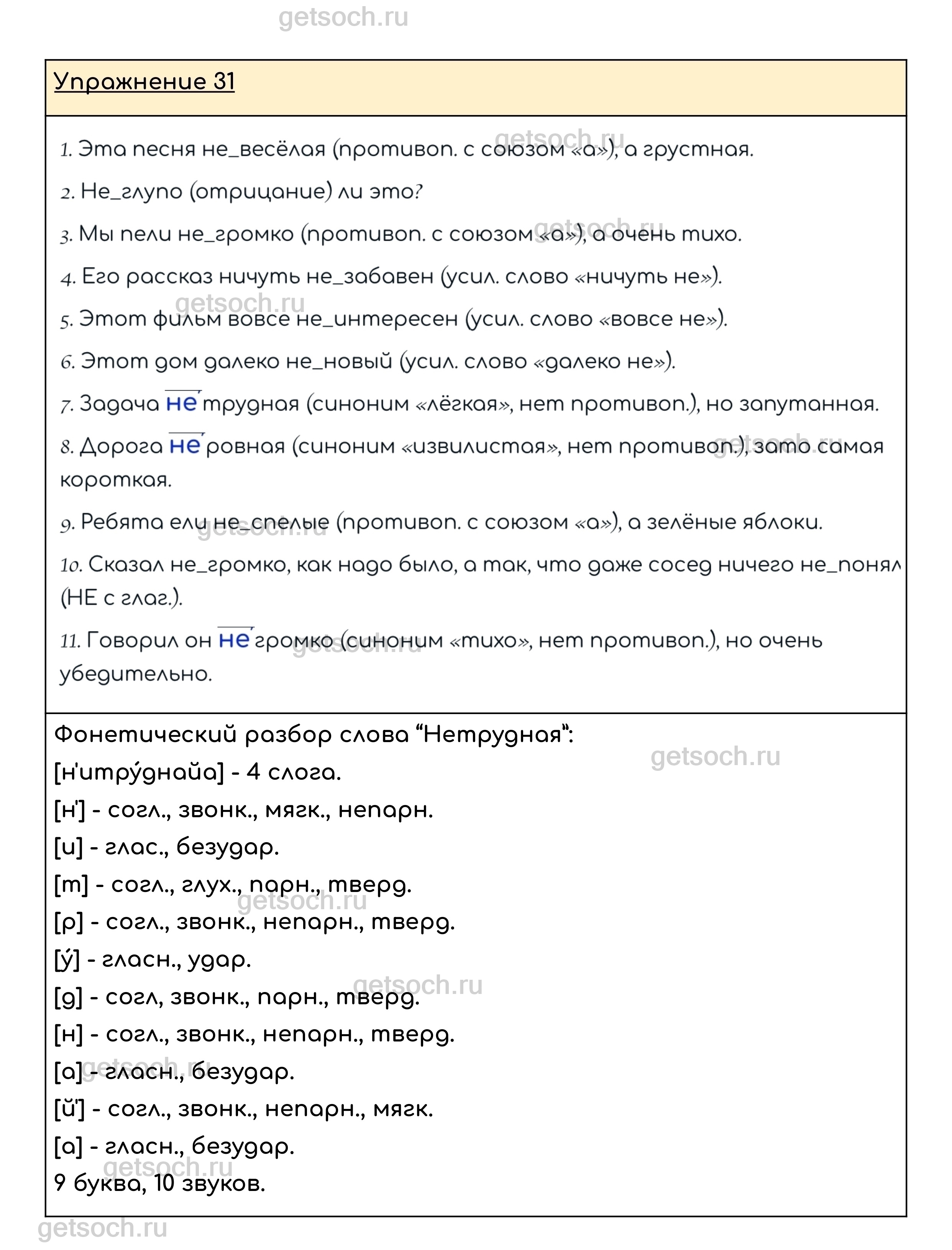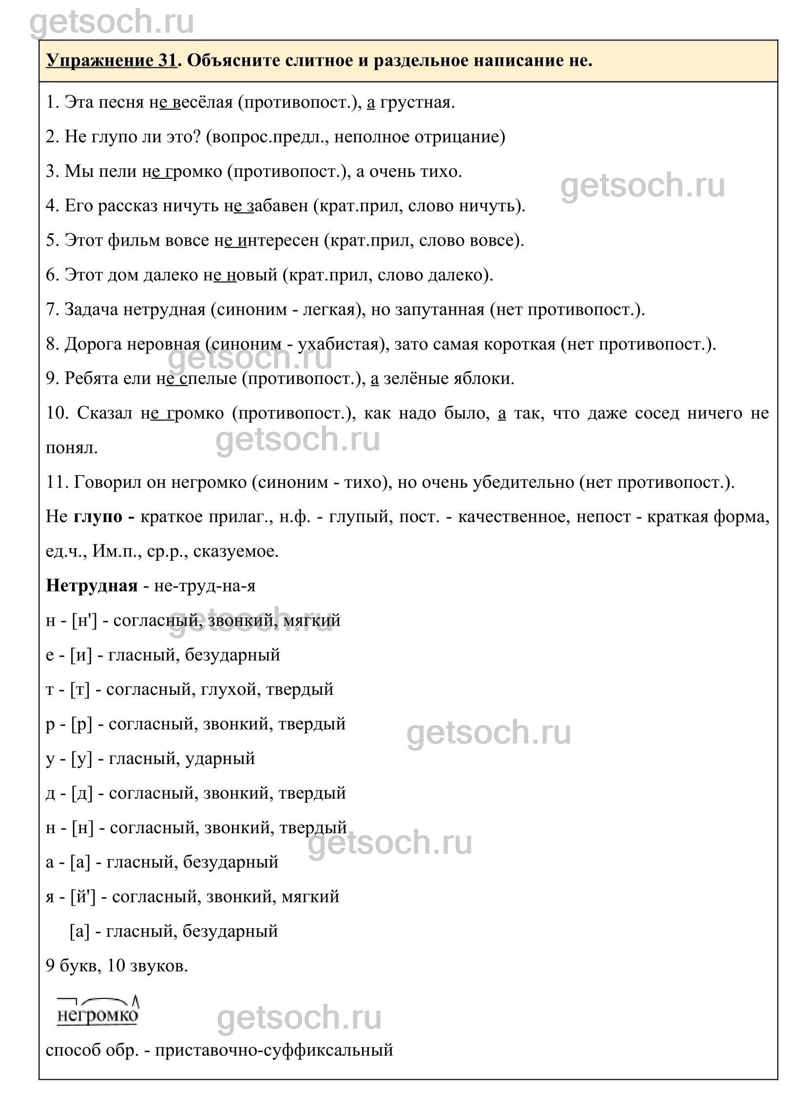 Упражнение 31. Объясните слитное и раздельное написание не.
