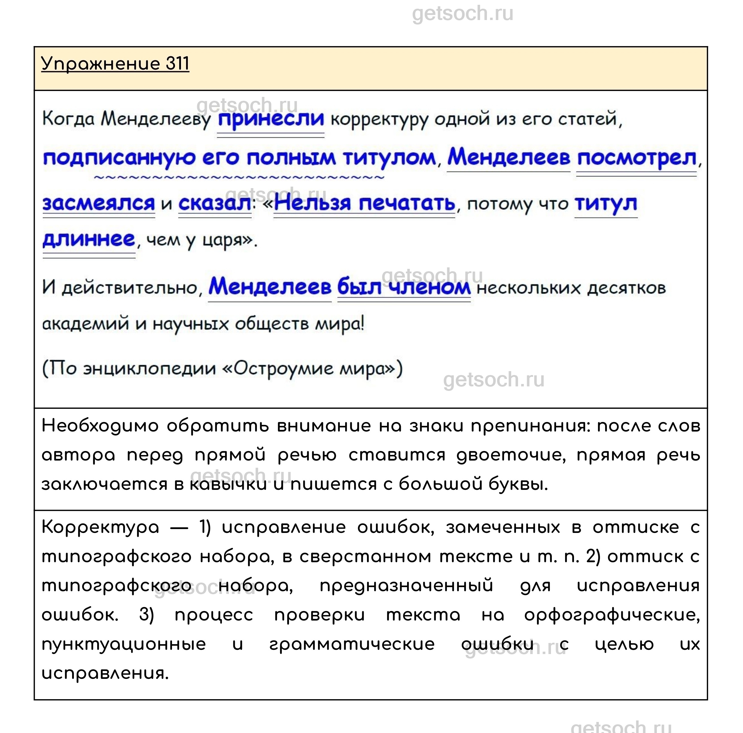 Рассмотрим ответы на Упражнение 311 из учебника по русскому языку для 8 класса Ладыженской