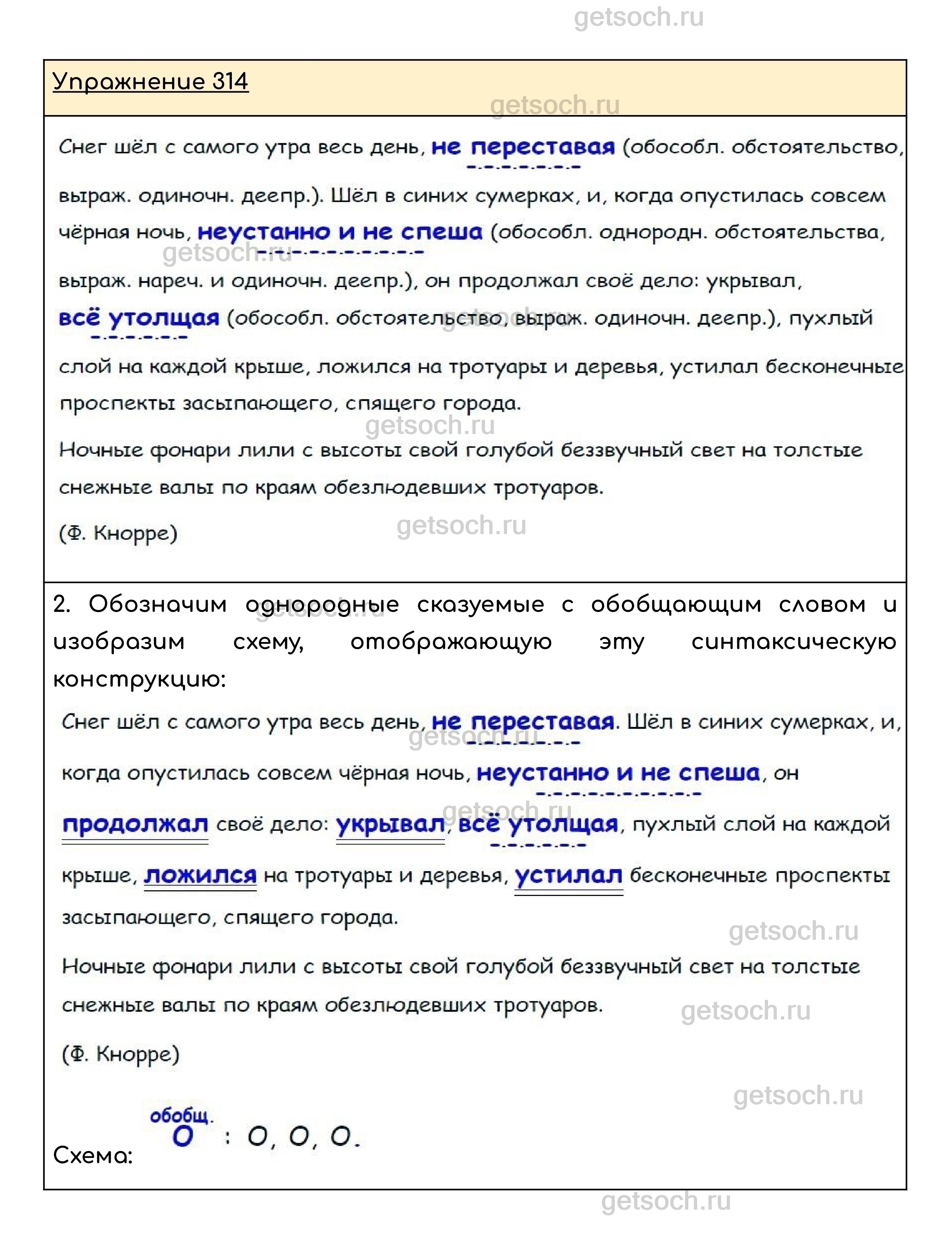Рассмотрим ответы на Упражнение 314 из учебника по русскому языку для 8 класса Ладыженской