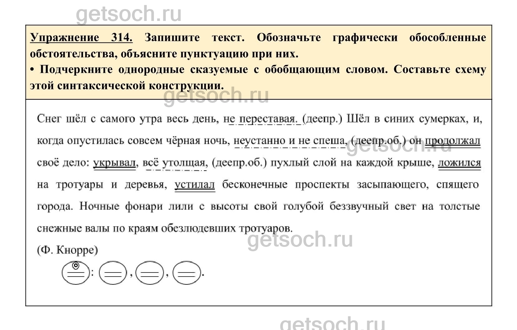 Упражнение 314. Запишите текст. Обозначьте графически обособленные обстоятельства, объясните пунктуацию при них.