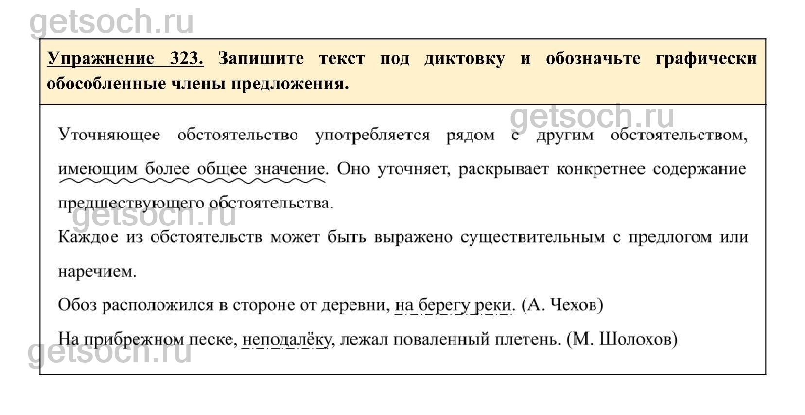 Упражнение 323. Запишите текст под диктовку и обозначьте графически обособленные члены предложения.