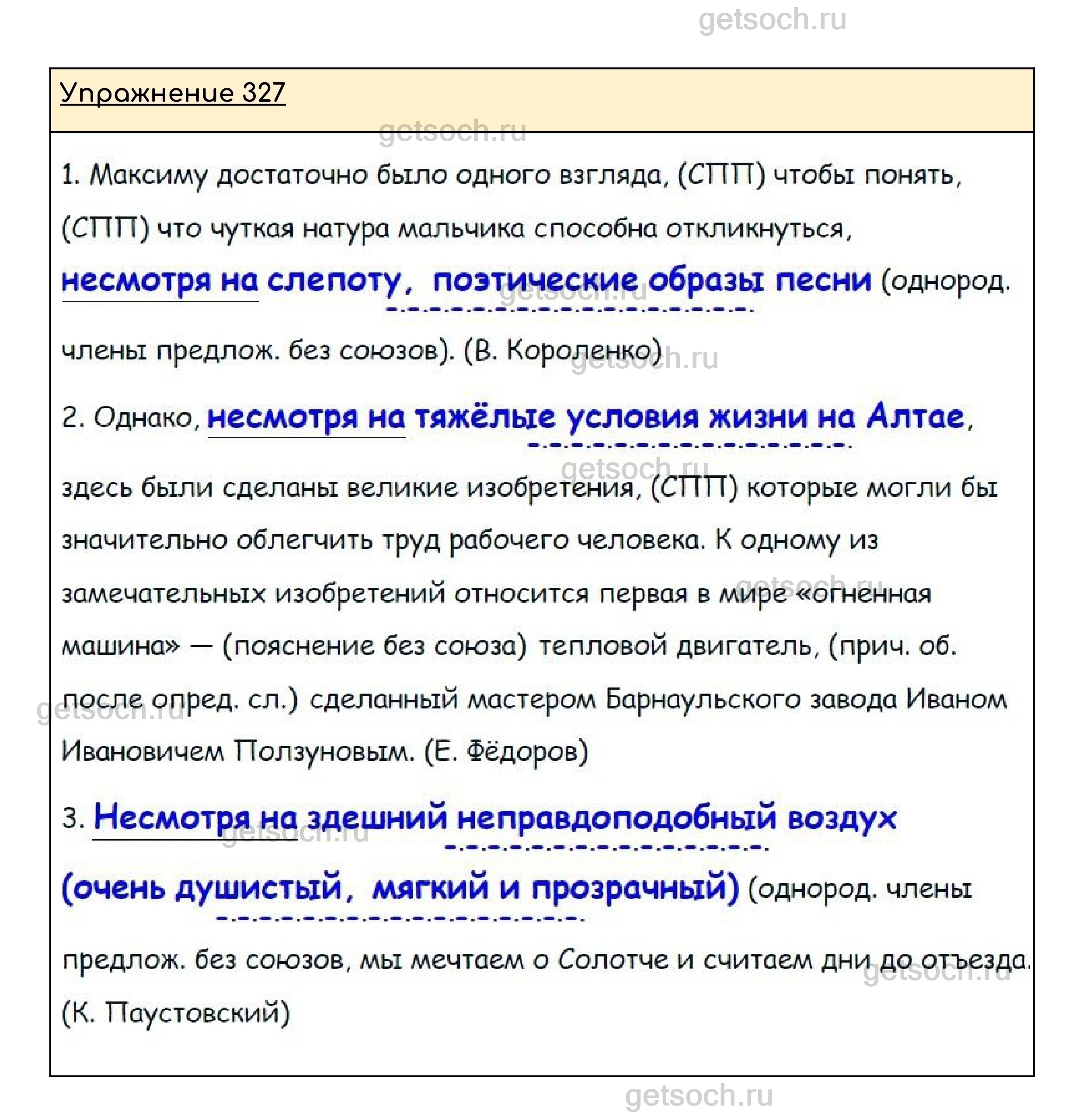 Рассмотрим ответы на Упражнение 327 из учебника по русскому языку для 8 класса Ладыженской