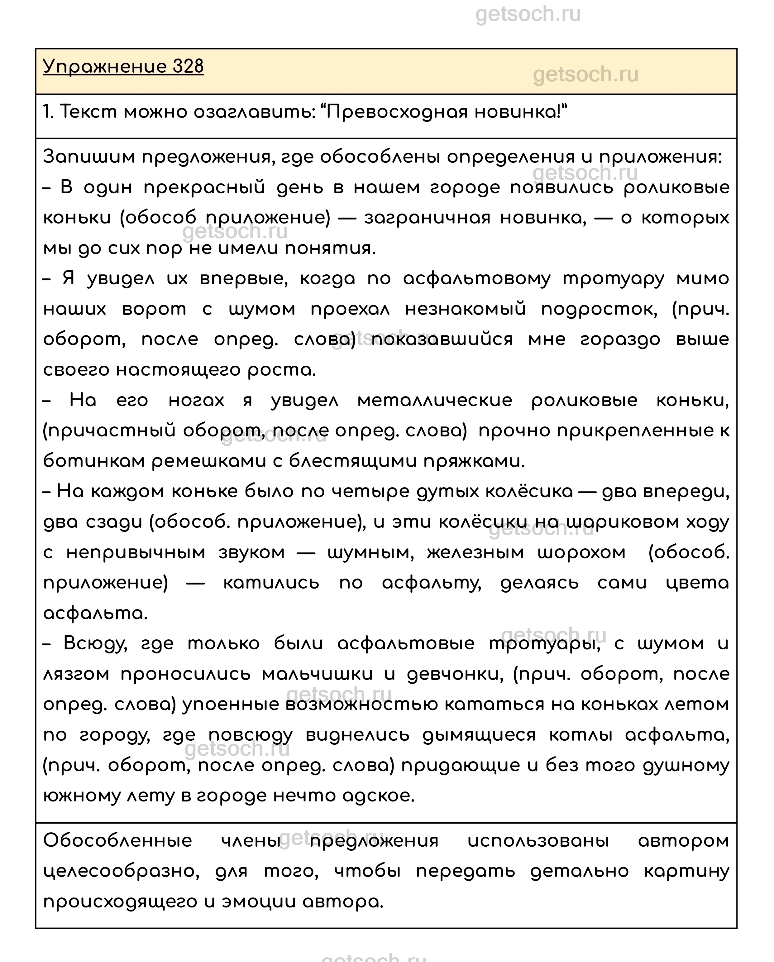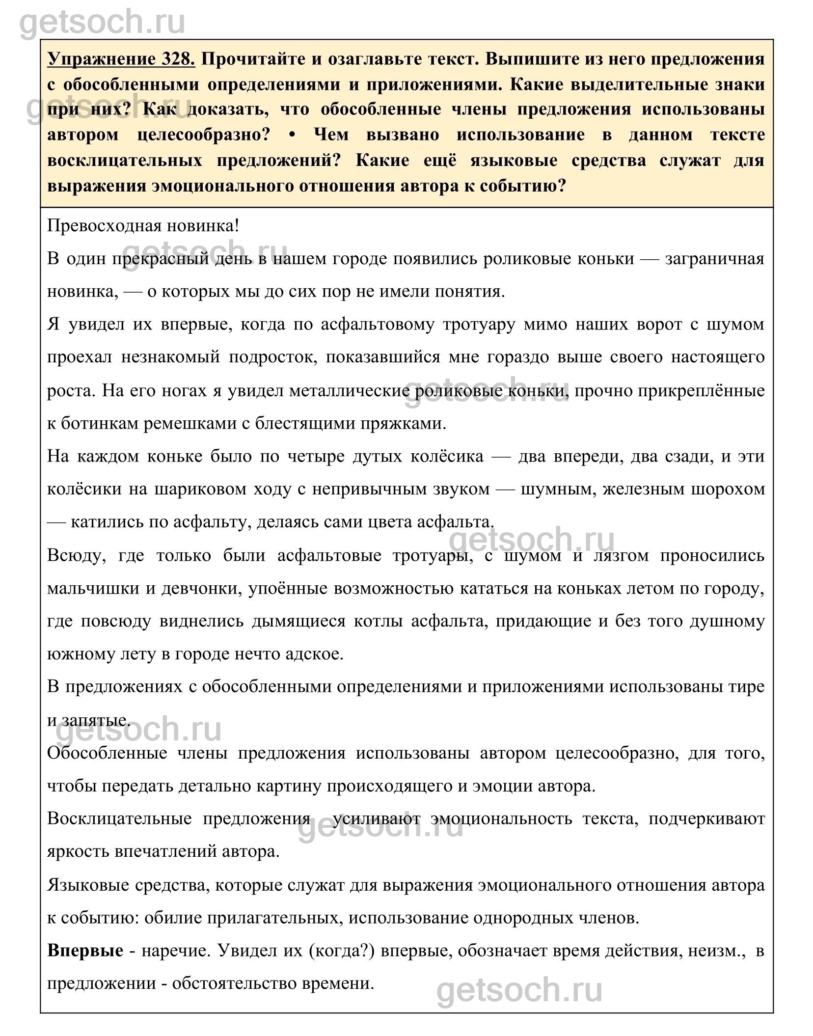 Рассмотрим ответы на Упражнение 328 из учебника по русскому языку для 8 класса Ладыженской