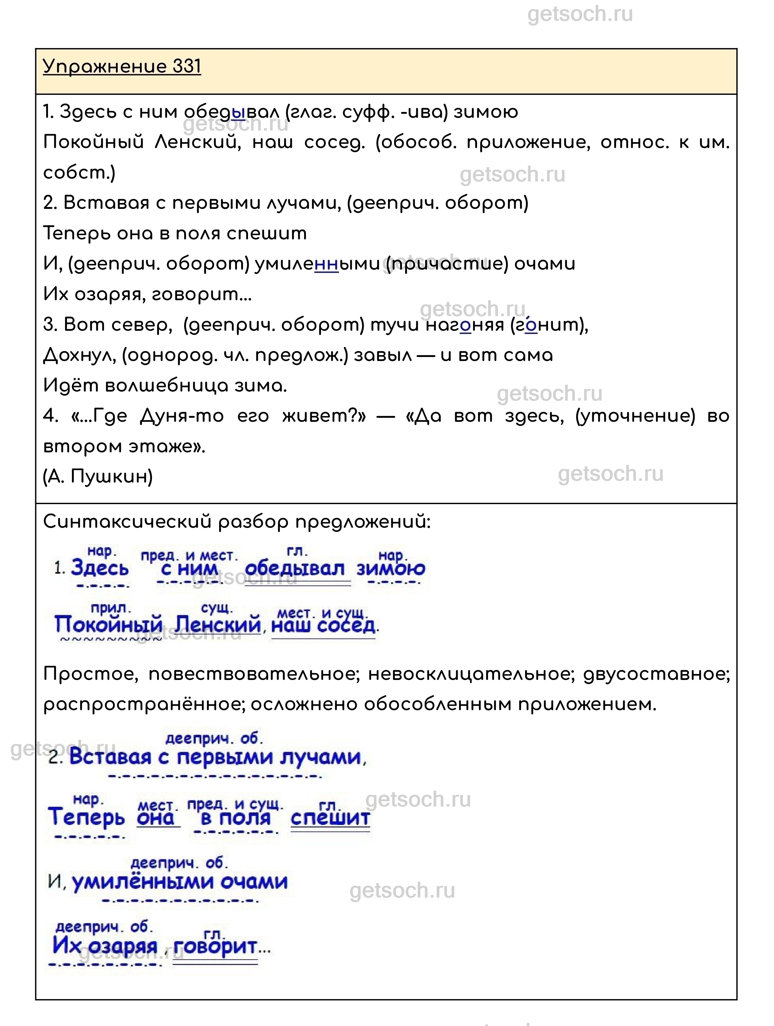 Рассмотрим ответы на Упражнение 331 из учебника по русскому языку для 8 класса Ладыженской
