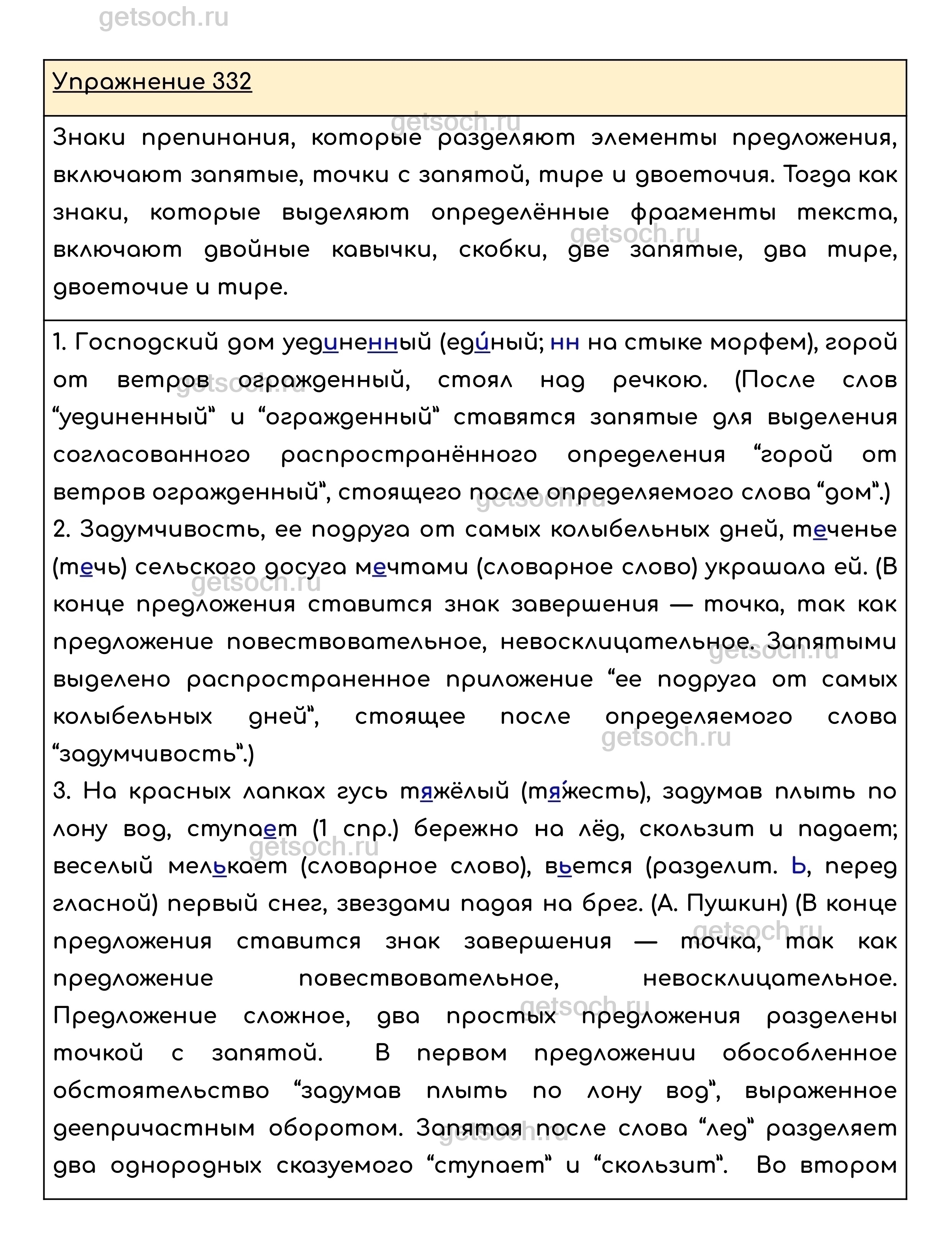 Рассмотрим ответы на Упражнение 332 из учебника по русскому языку для 8 класса Ладыженской