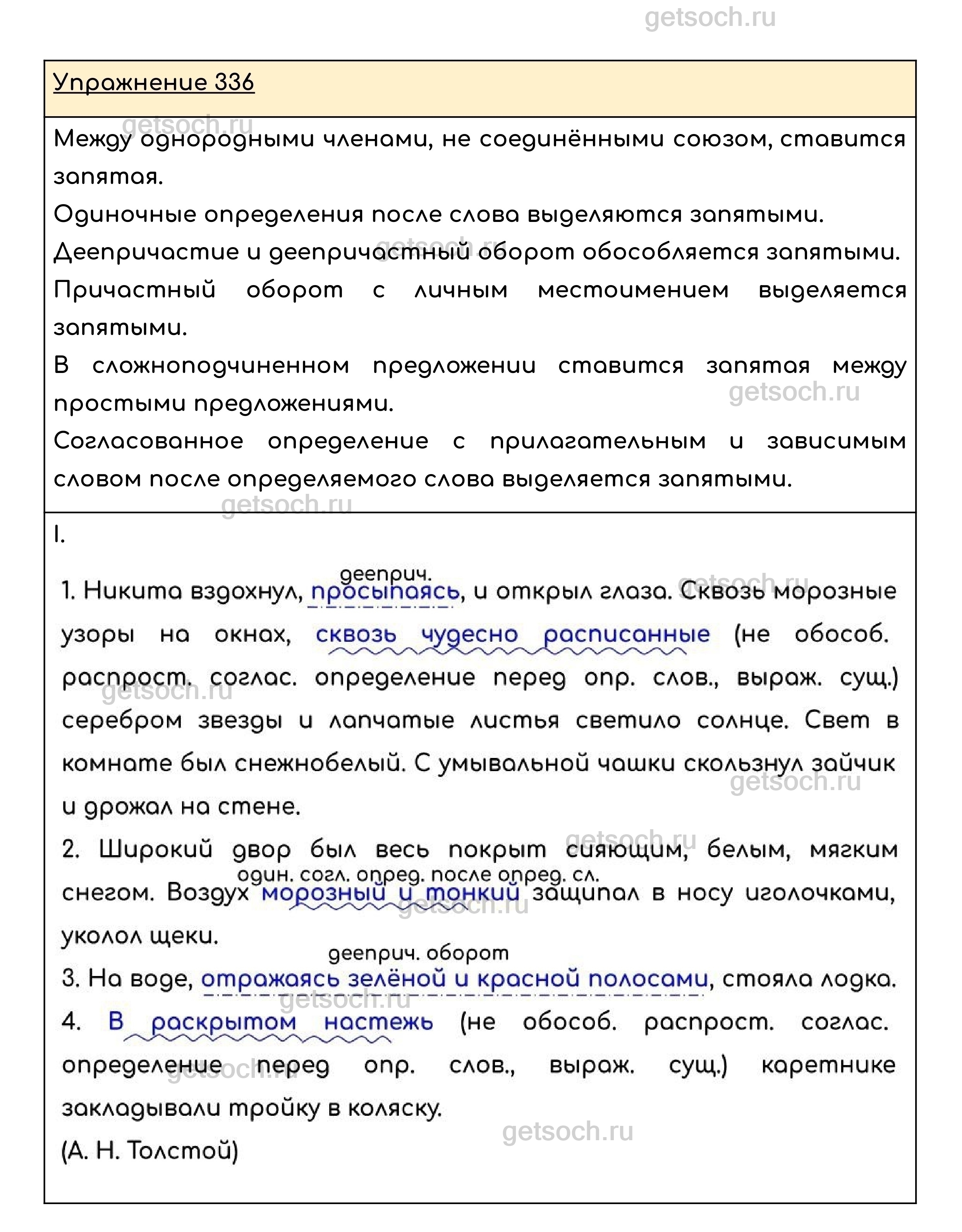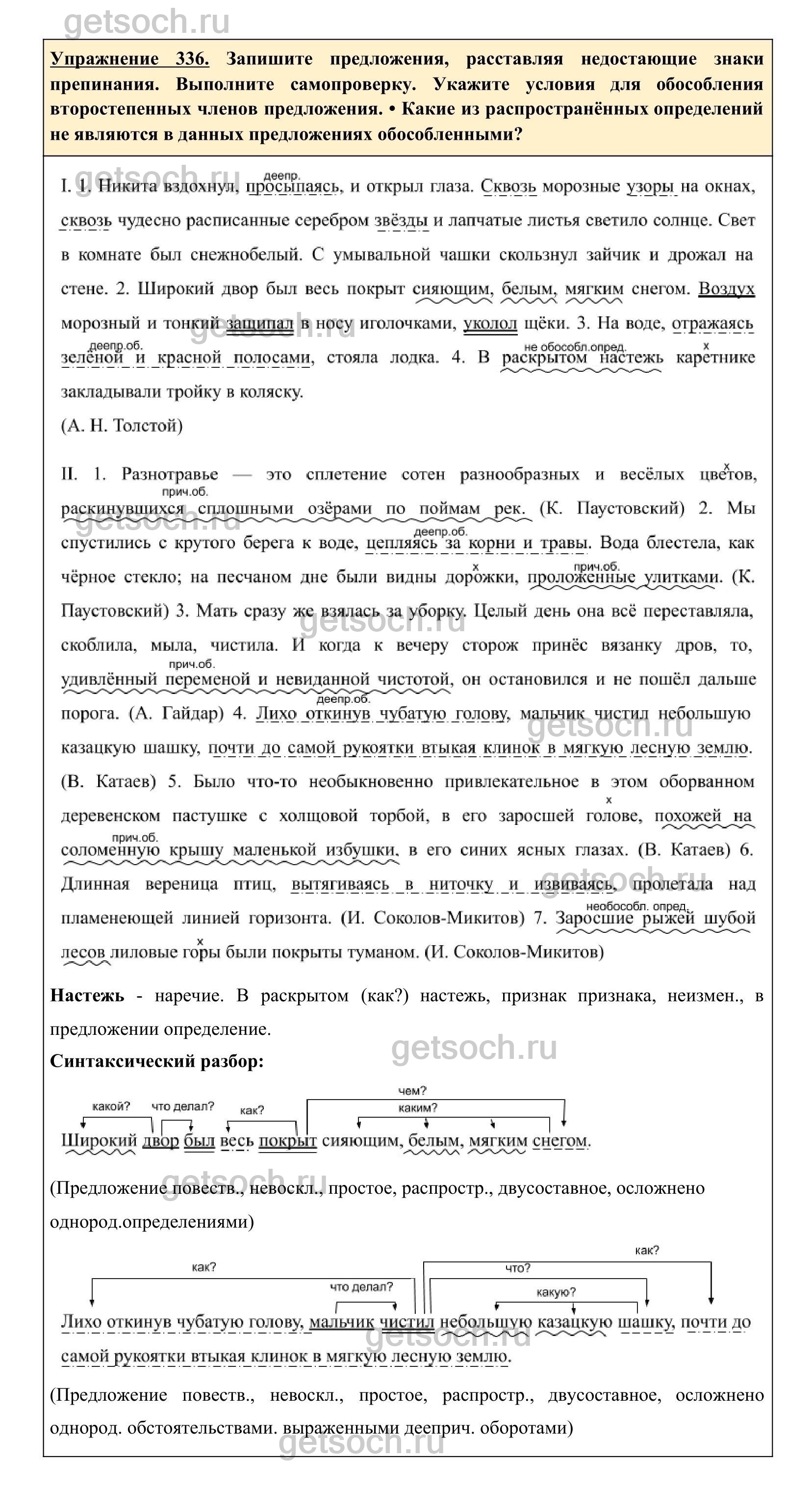 Рассмотрим ответы на Упражнение 336 из учебника по русскому языку для 8 класса Ладыженской