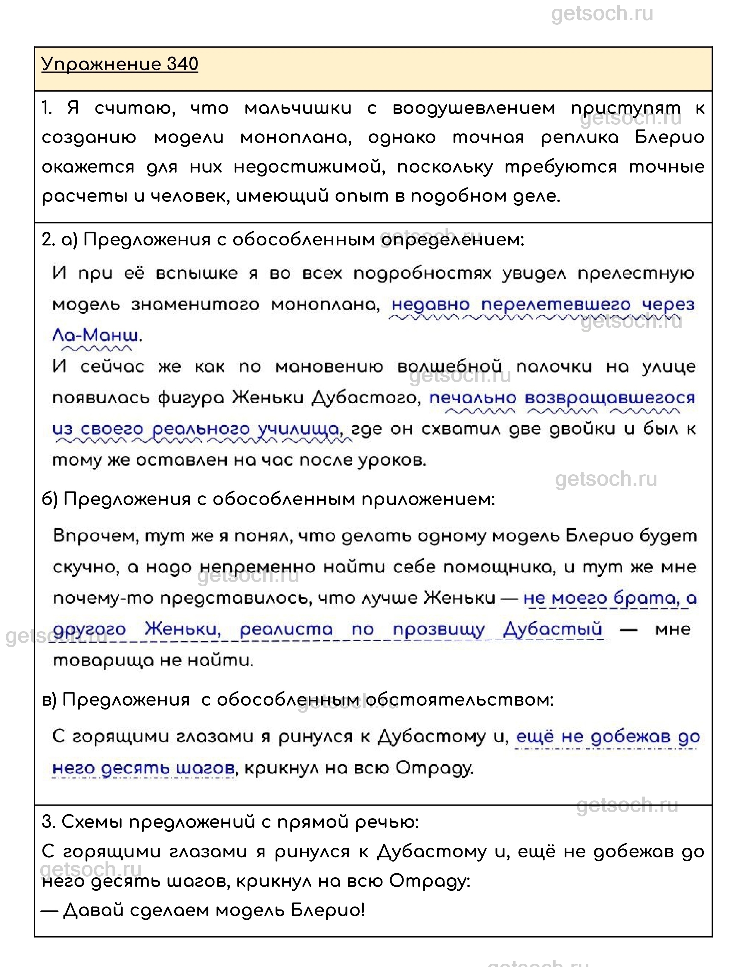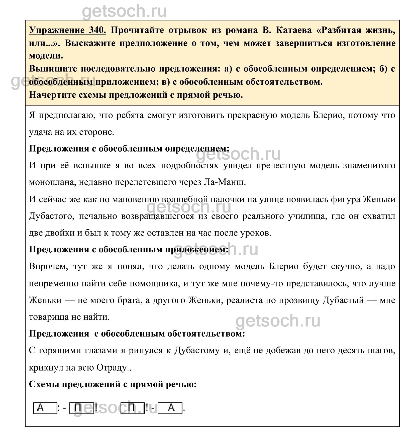 Рассмотрим ответы на Упражнение 340 из учебника по русскому языку для 8 класса Ладыженской