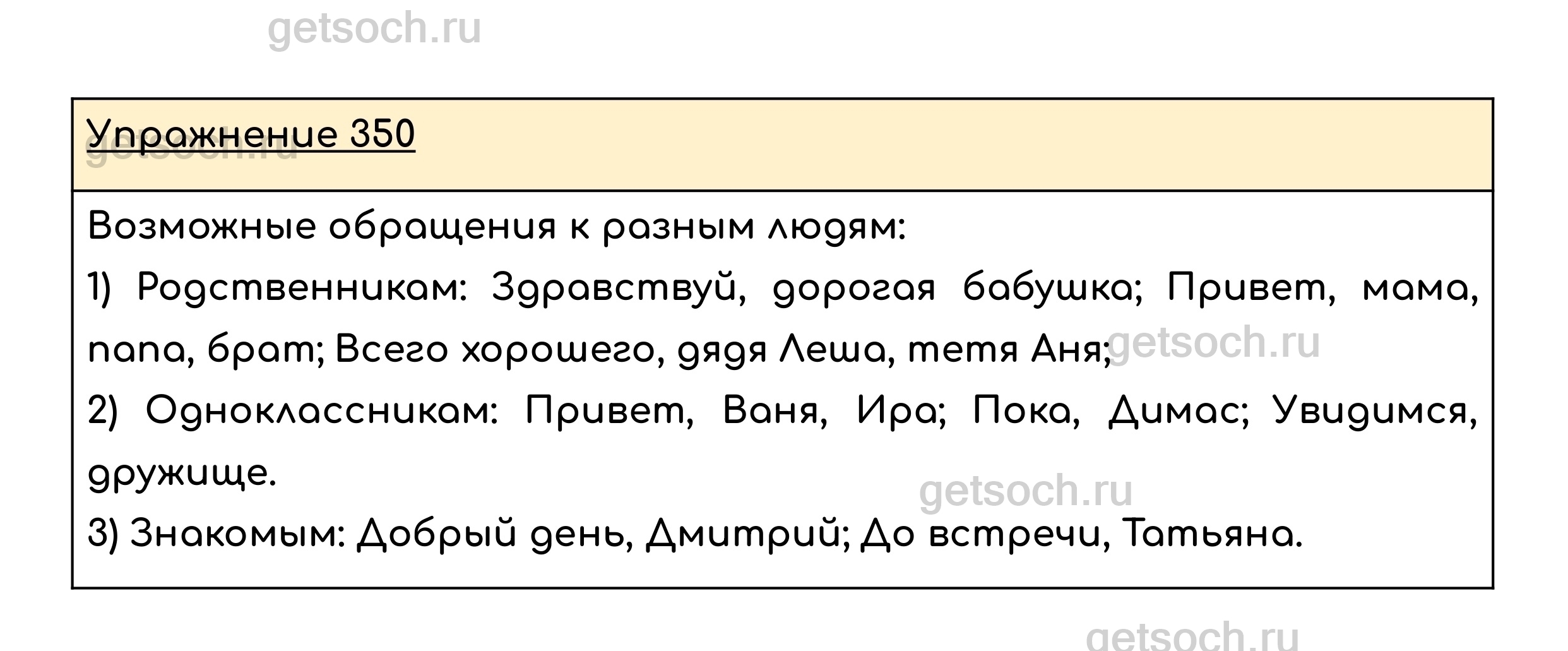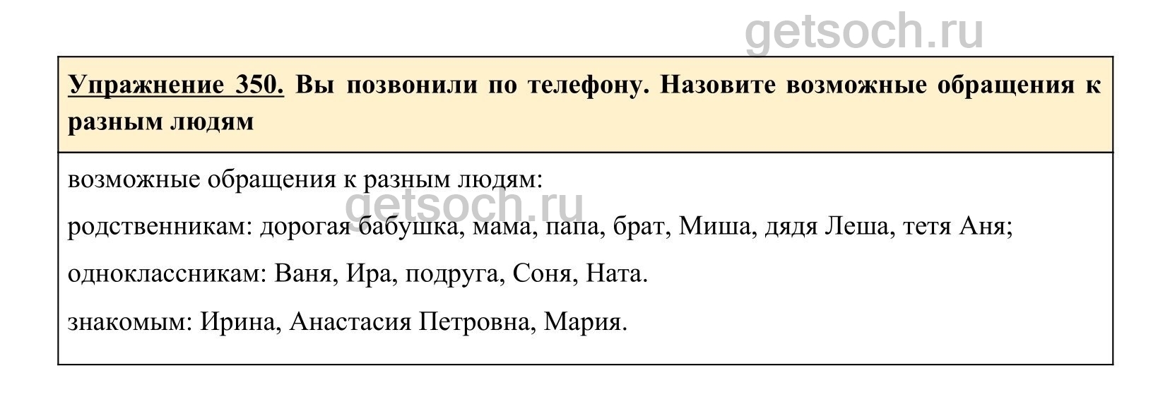 Упражнение 350. Вы позвонили по телефону. Назовите возможные обращения к разным людям
