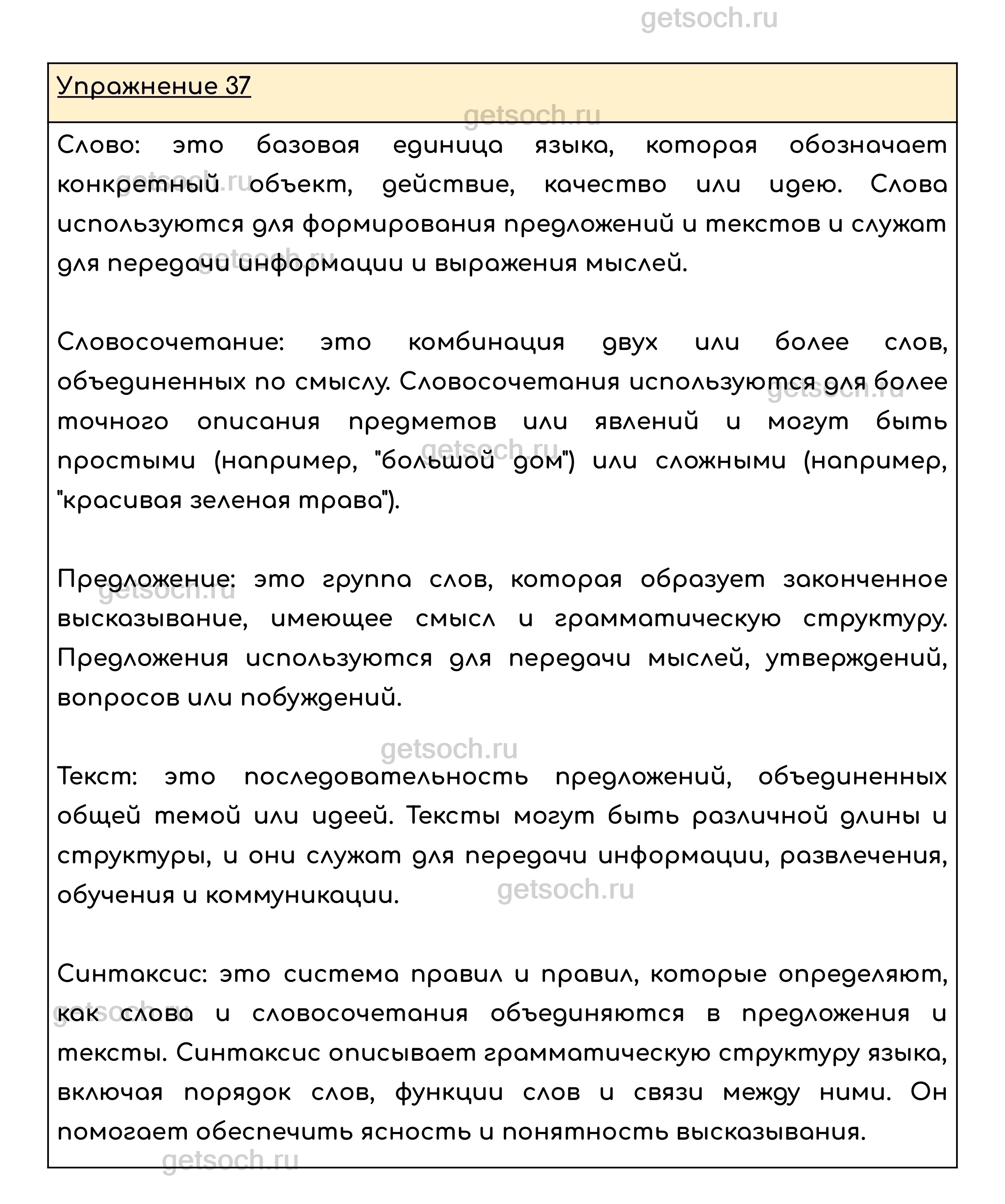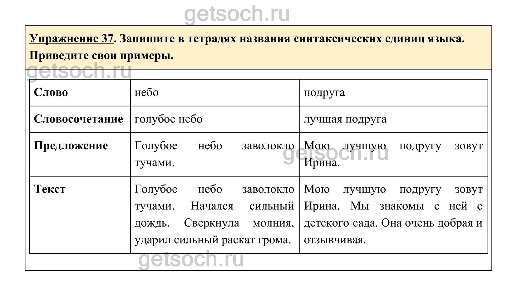 Упражнение 37. Запишите в тетрадях названия синтаксических единиц языка. Приведите свои примеры.
