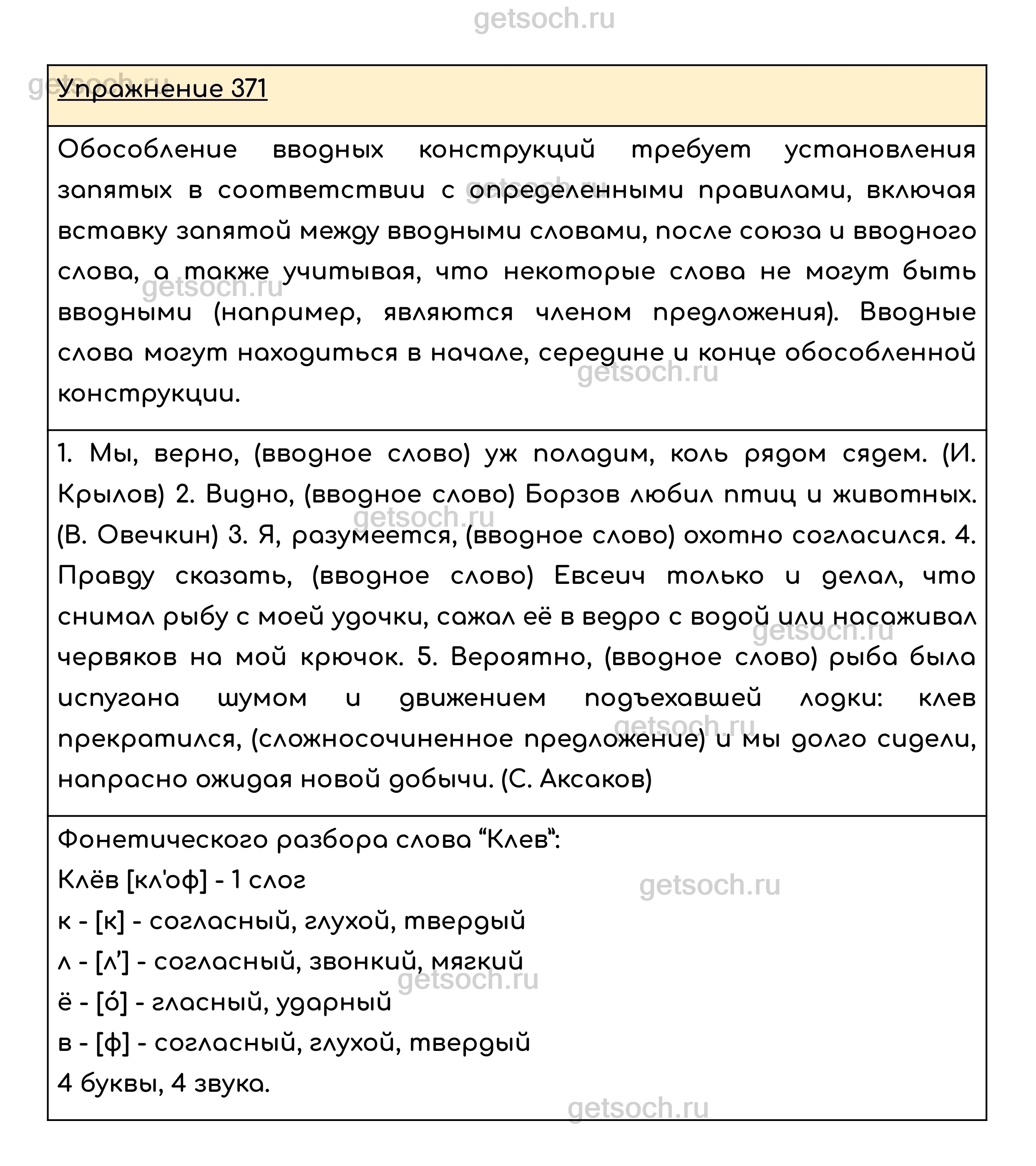 Рассмотрим ответы на Упражнение 371 из учебника по русскому языку для 8 класса Ладыженской