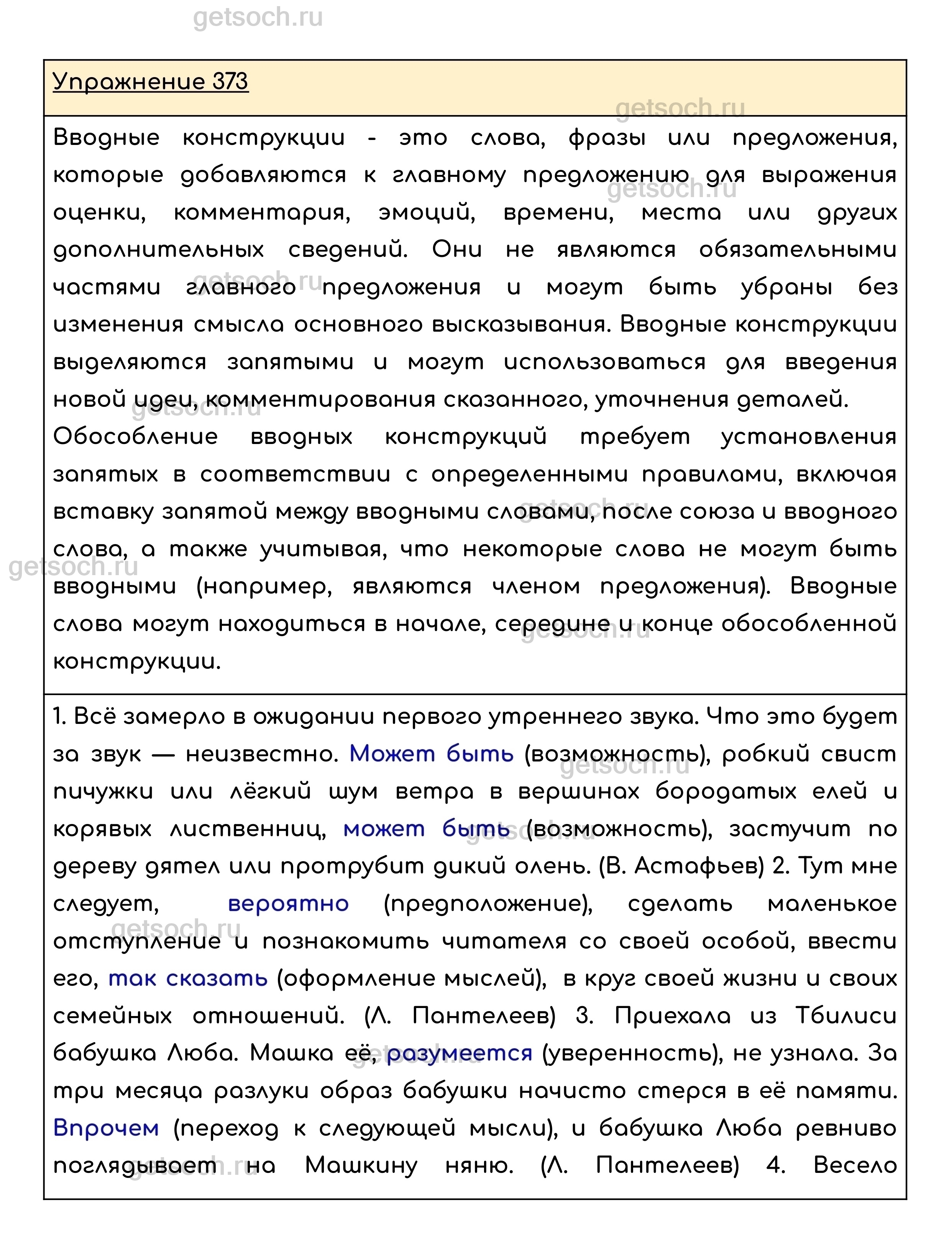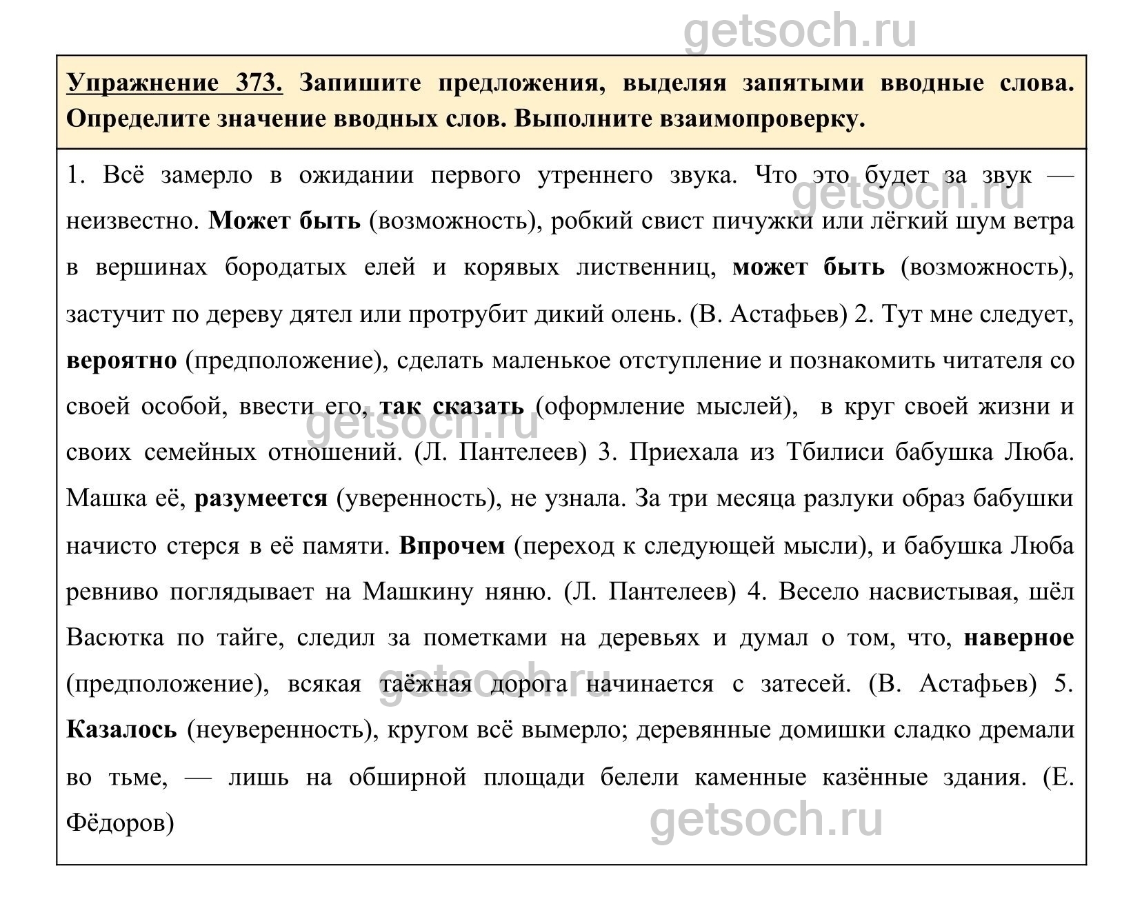Упражнение 373. Запишите предложения, выделяя запятыми вводные слова. Определите значение вводных слов. Выполните взаимопроверку.