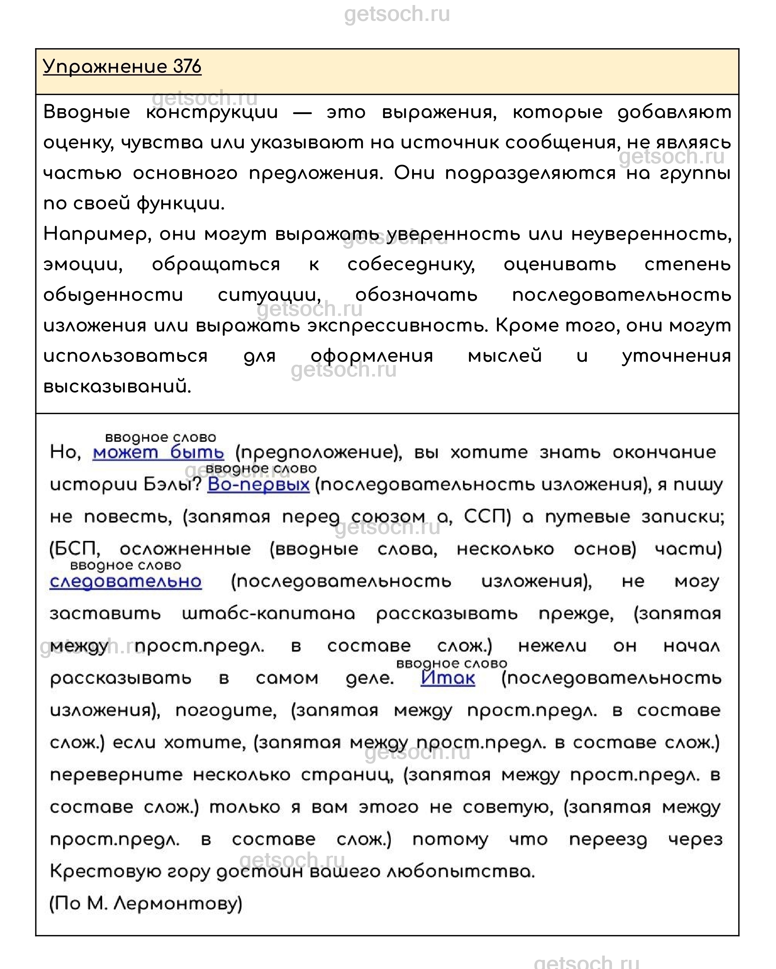 Рассмотрим ответы на Упражнение 376 из учебника по русскому языку для 8 класса Ладыженской