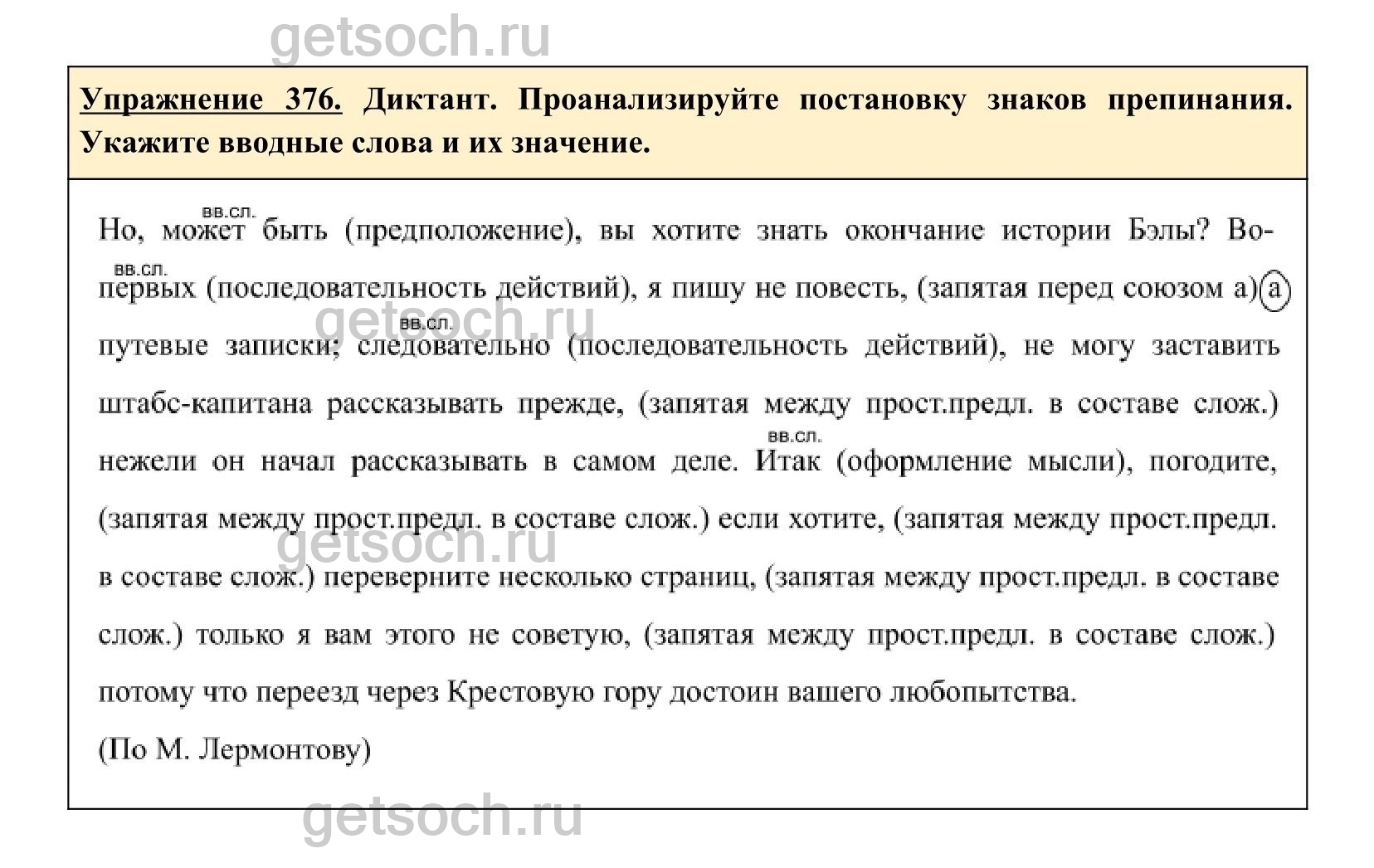 Упражнение 376. Диктант. Проанализируйте постановку знаков препинания. Укажите вводные слова и их значение.