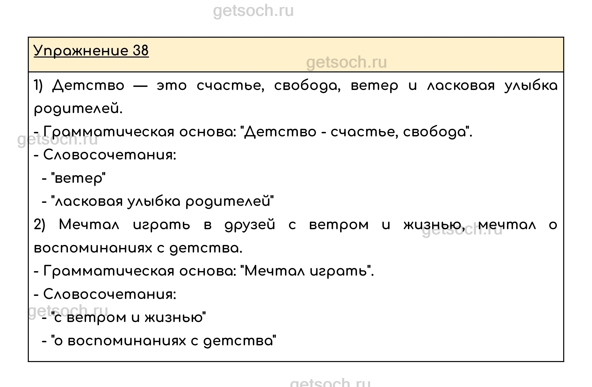 Рассмотрим ответы на Упражнение 38 из учебника по русскому языку для 8 класса Ладыженской