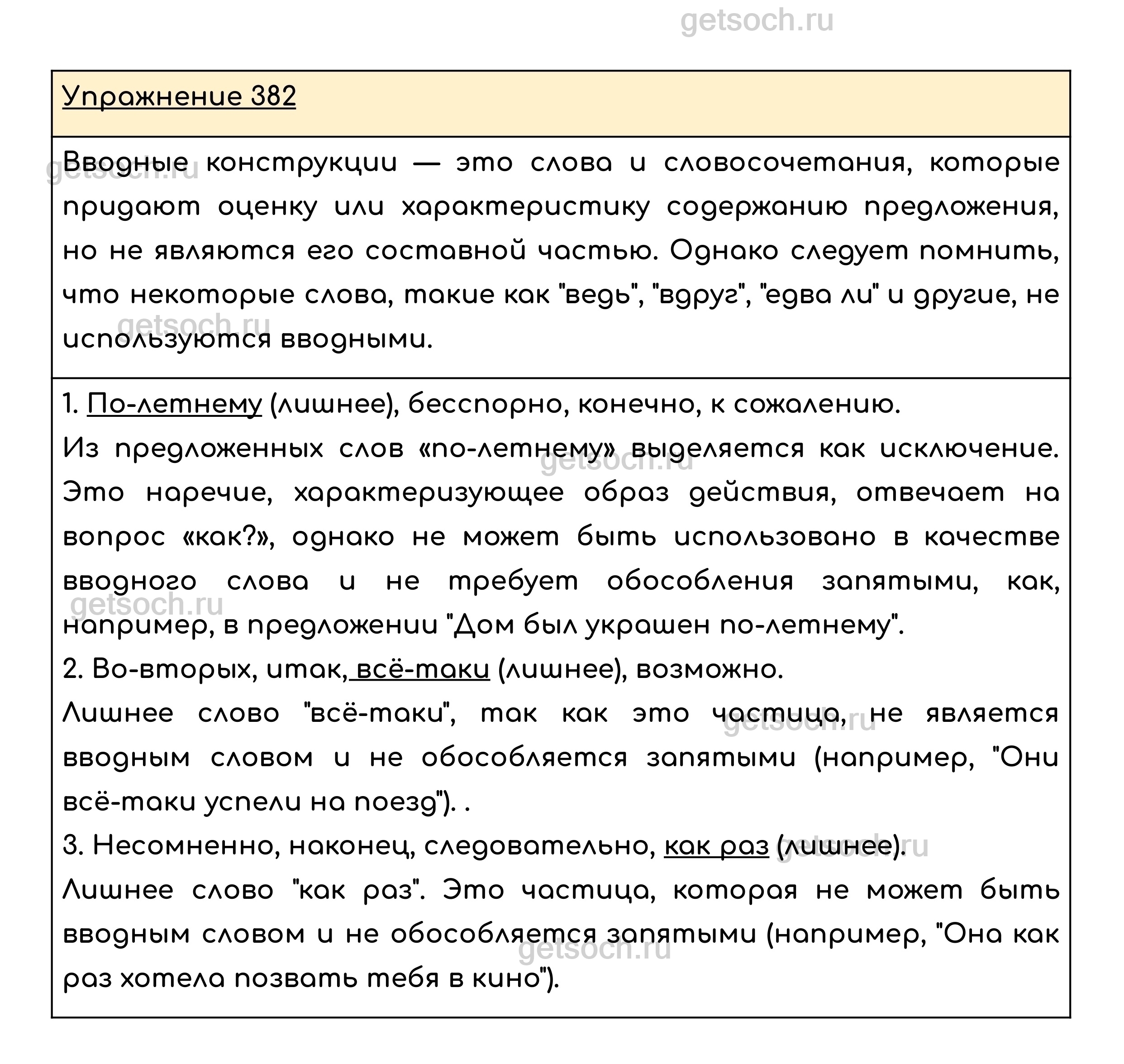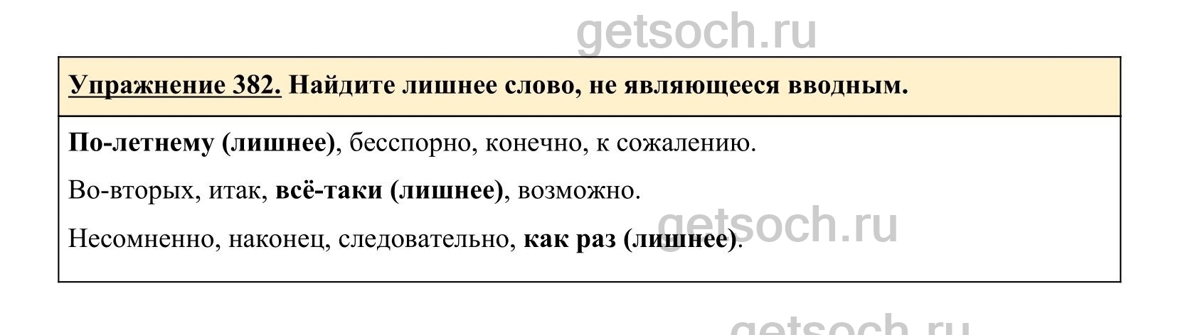 Упражнение 382. Найдите лишнее слово, не являющееся вводным.