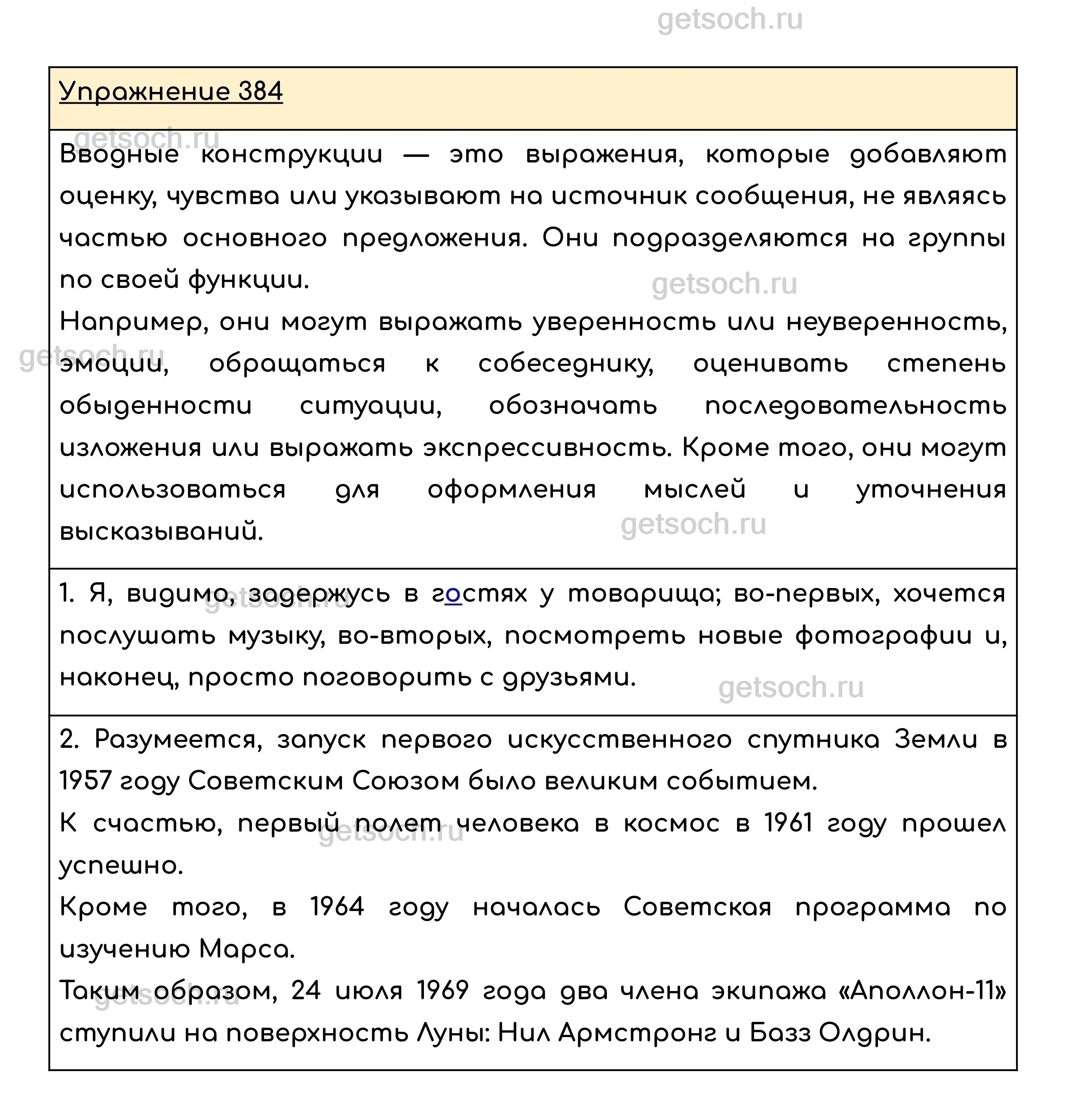 Рассмотрим ответы на Упражнение 384 из учебника по русскому языку для 8 класса Ладыженской