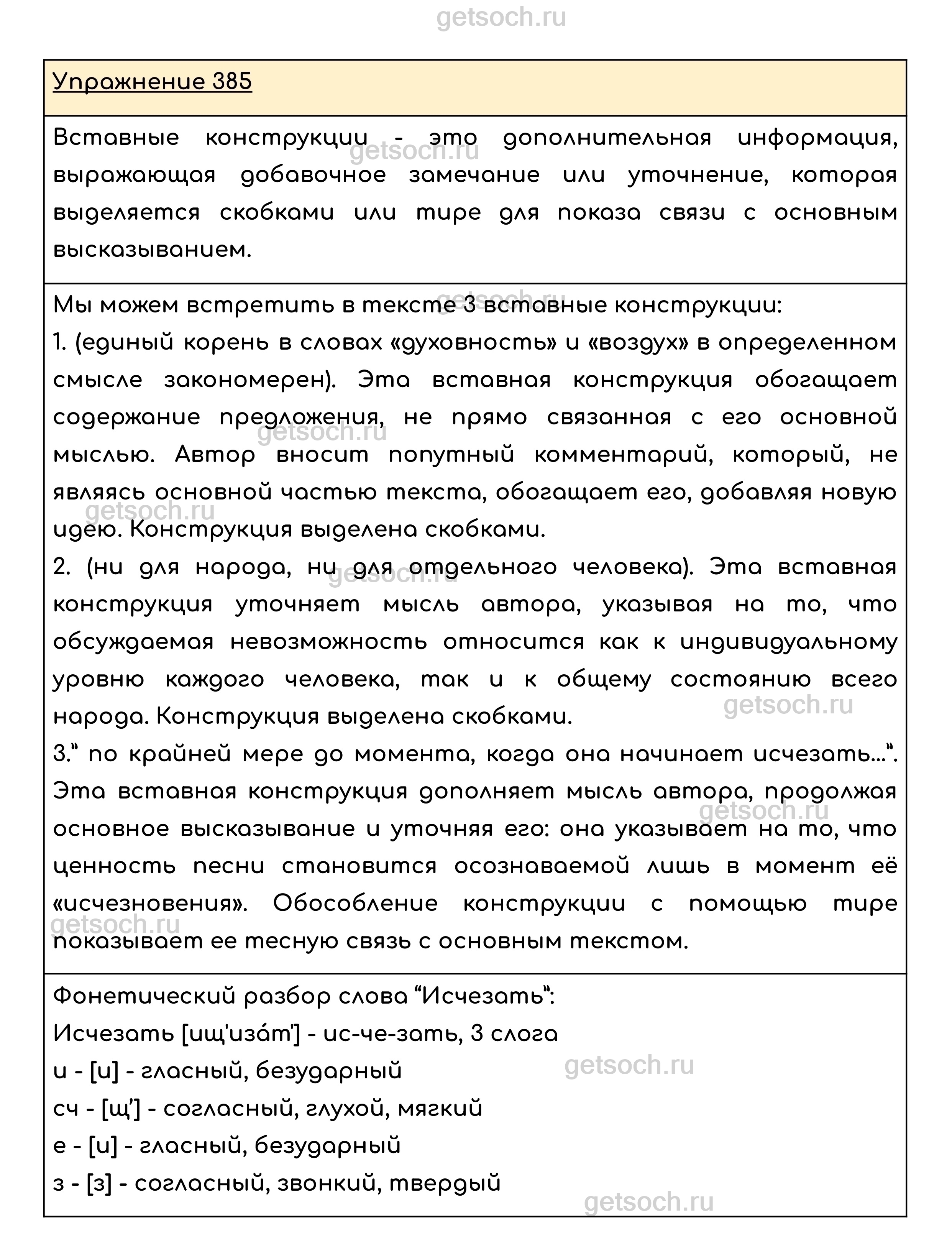 Рассмотрим ответы на Упражнение 385 из учебника по русскому языку для 8 класса Ладыженской