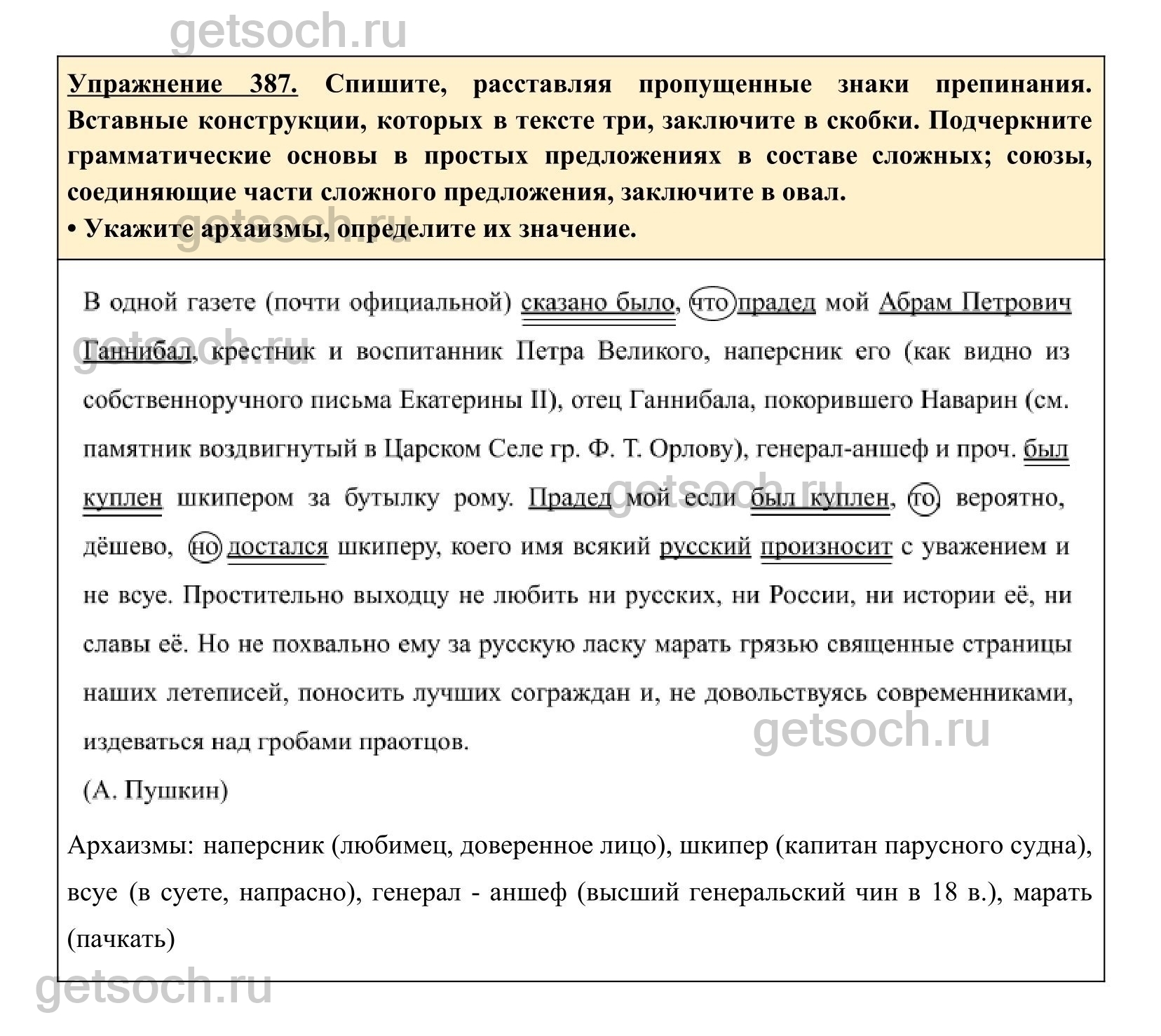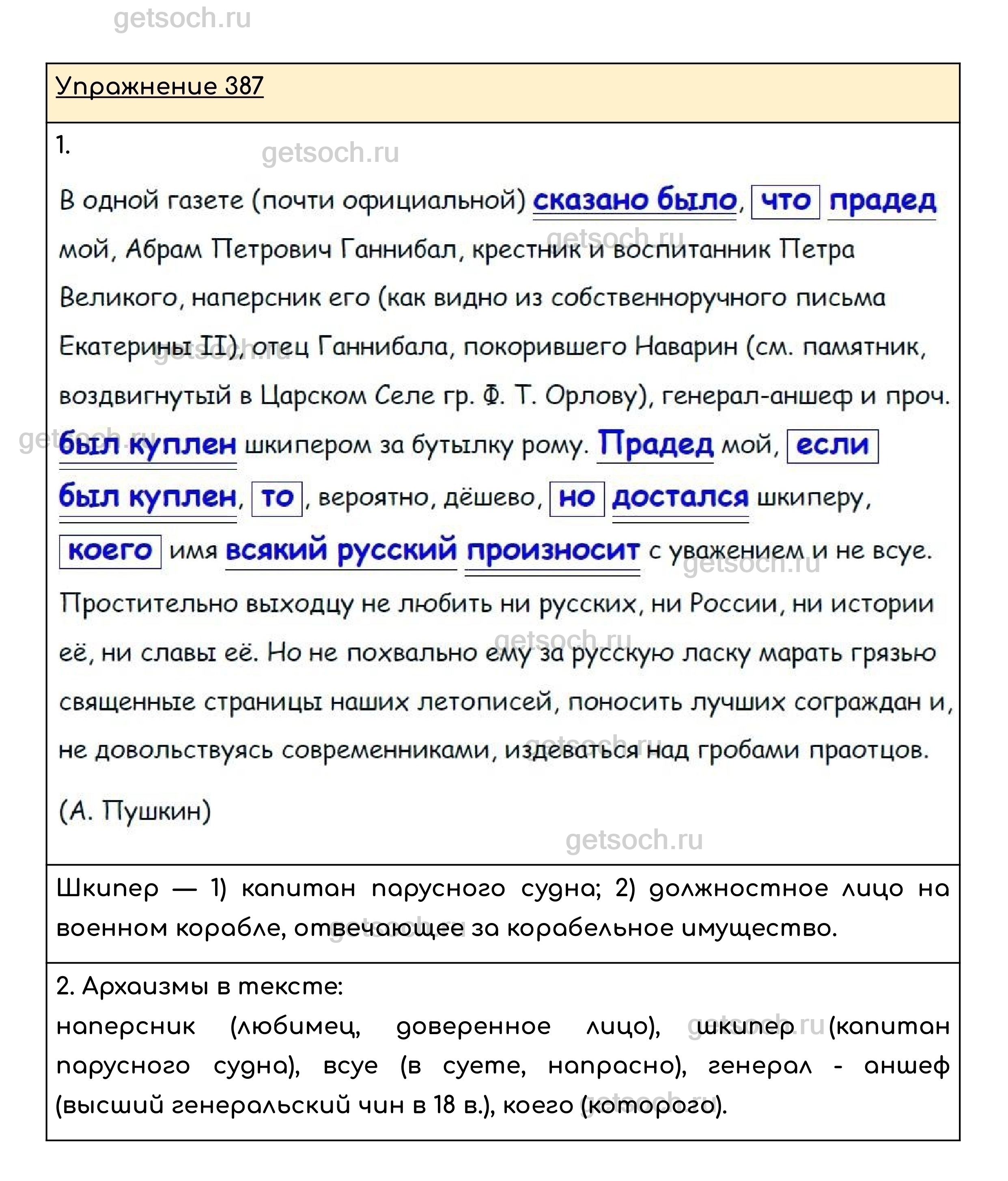 Рассмотрим ответы на Упражнение 387 из учебника по русскому языку для 8 класса Ладыженской