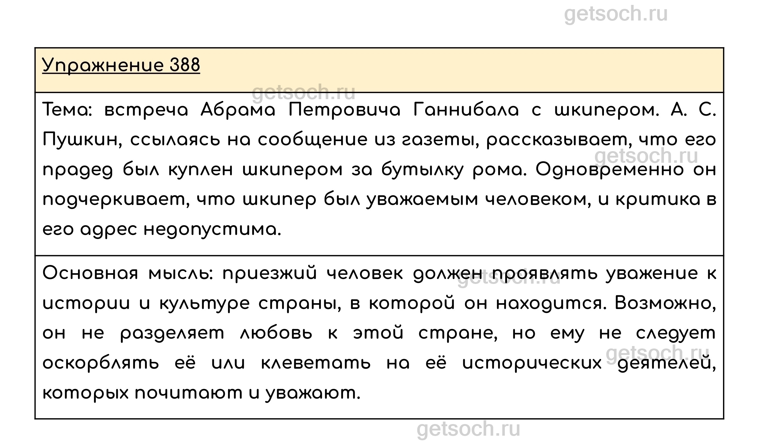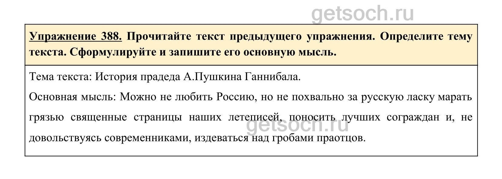 Упражнение 388. Прочитайте текст предыдущего упражнения. Определите тему текста. Сформулируйте и запишите его основную мысль.