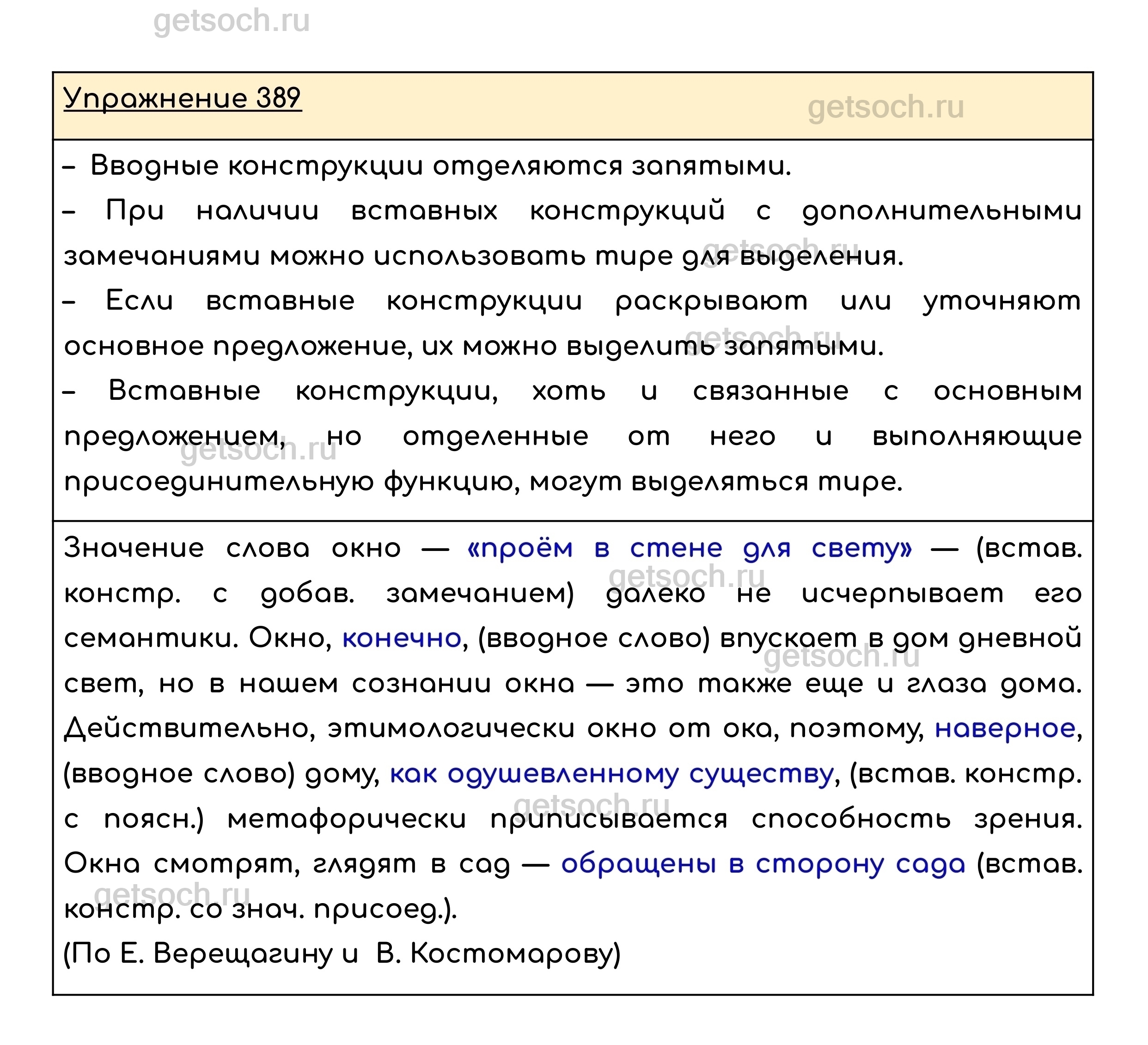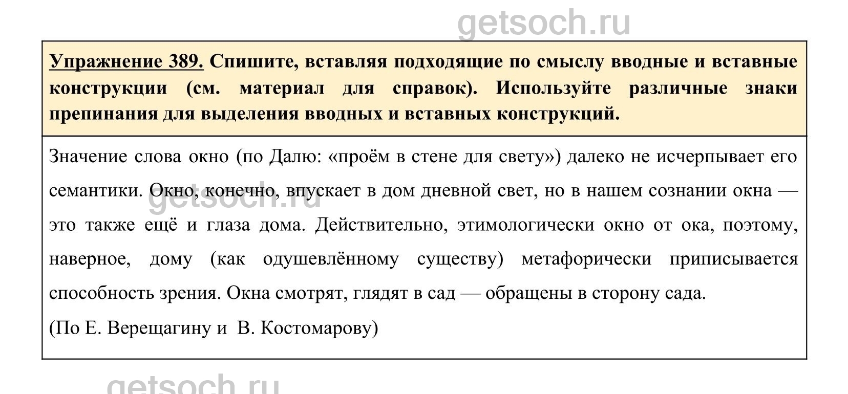 Рассмотрим ответы на Упражнение 389 из учебника по русскому языку для 8 класса Ладыженской