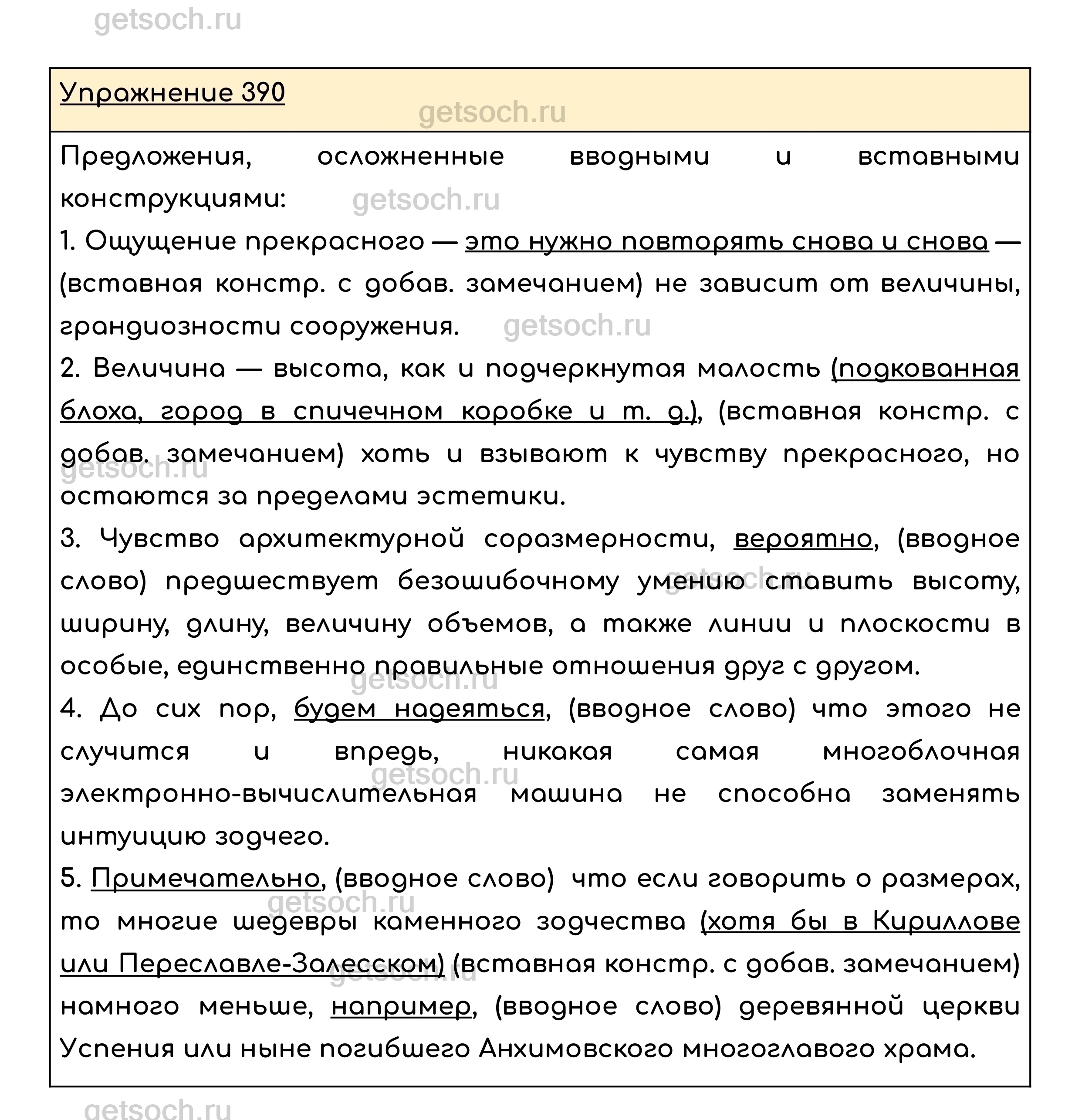 Упражнение 390. Выборочный диктант. Запишите предложения, осложнённые вводными и вставными конструкциями.