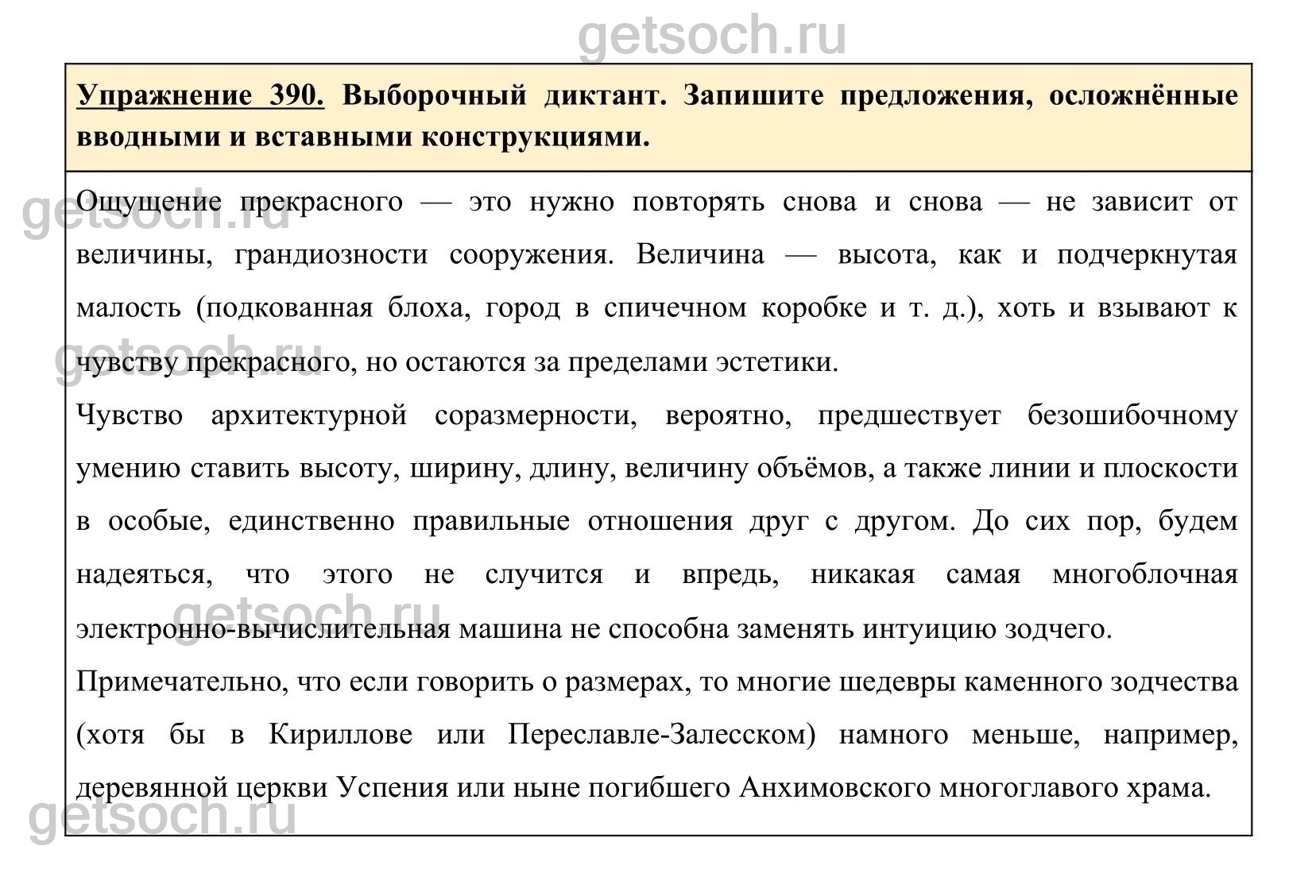 Рассмотрим ответы на Упражнение 390 из учебника по русскому языку для 8 класса Ладыженской