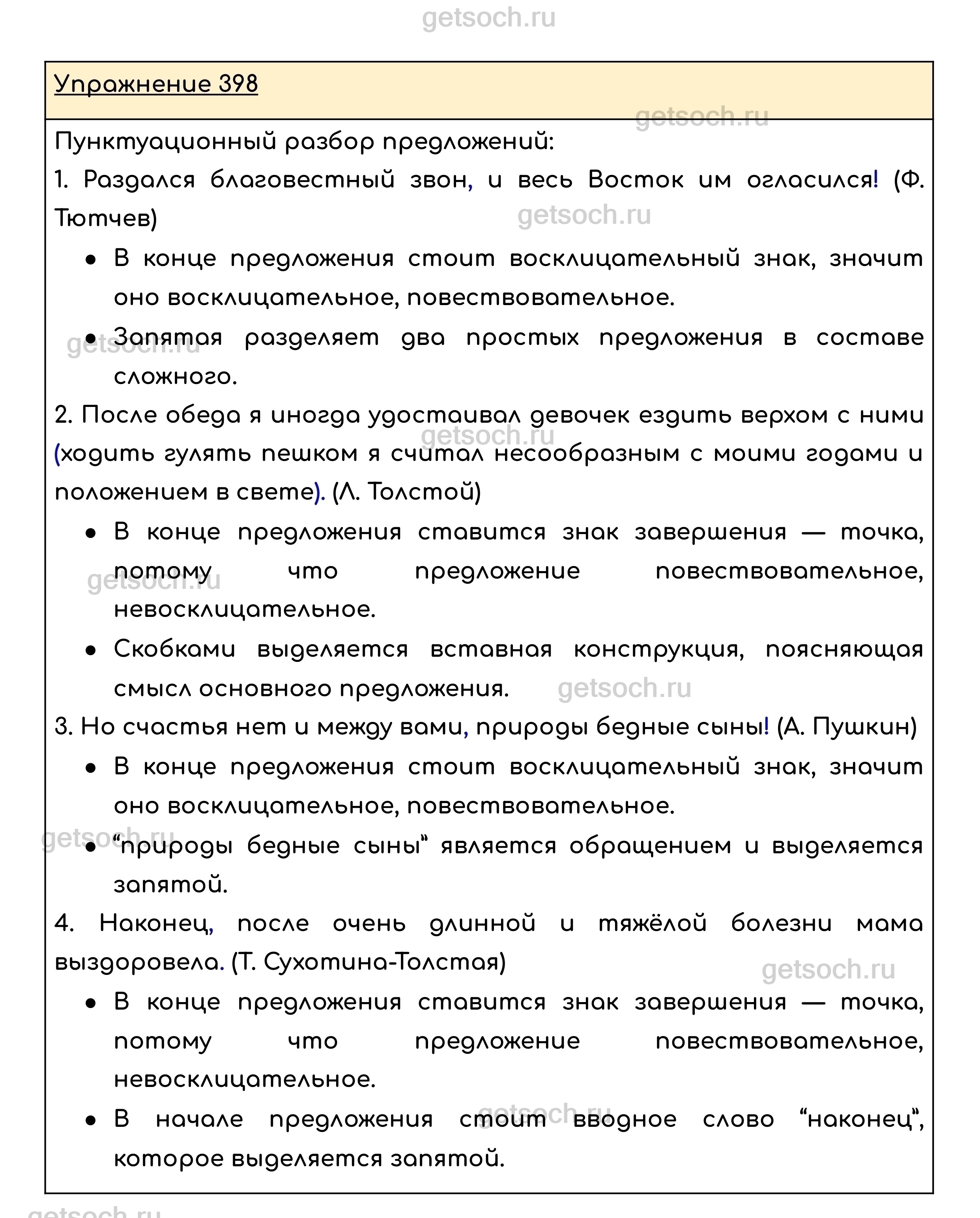 Рассмотрим ответы на Упражнение 398 из учебника по русскому языку для 8 класса Ладыженской