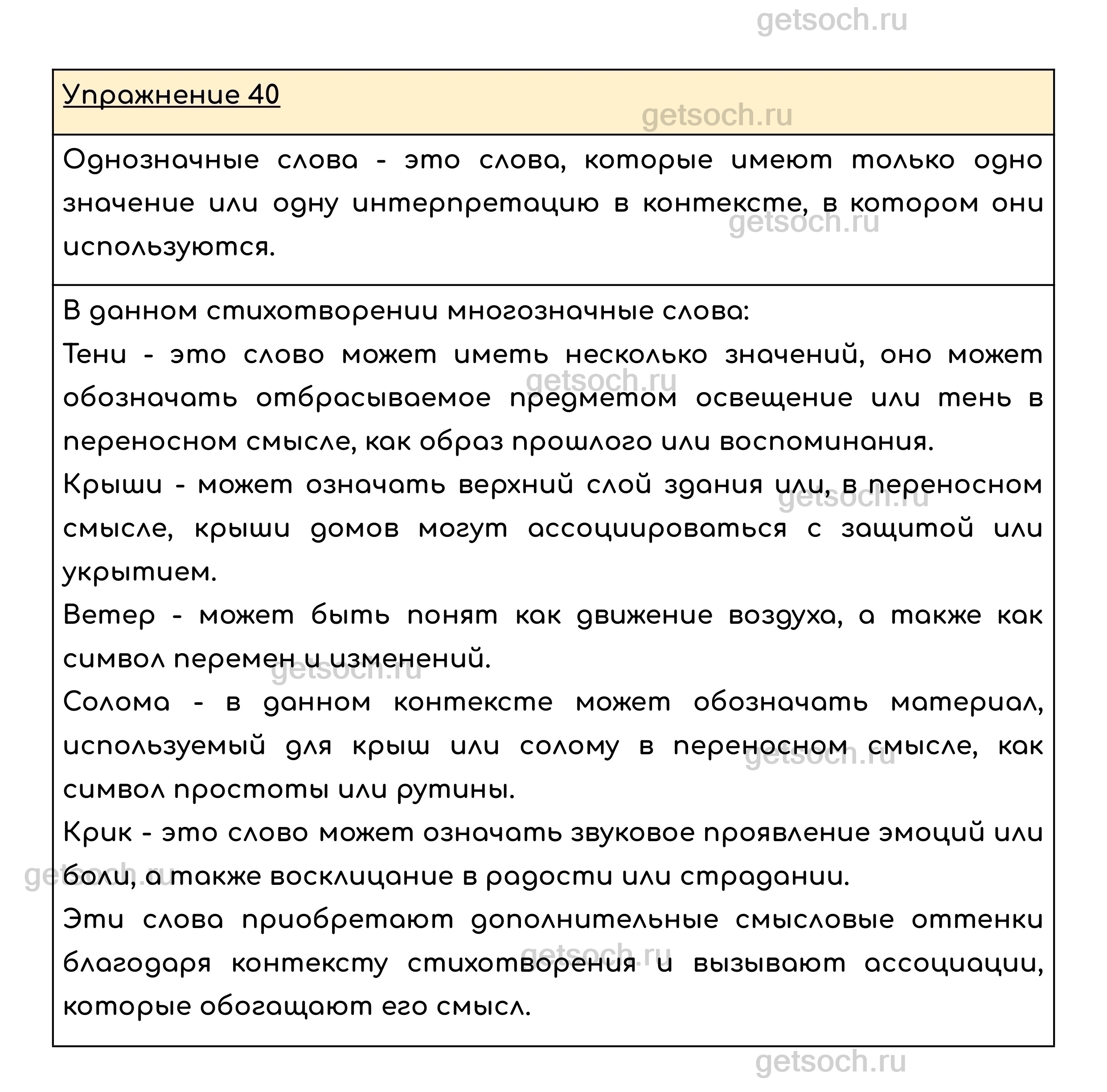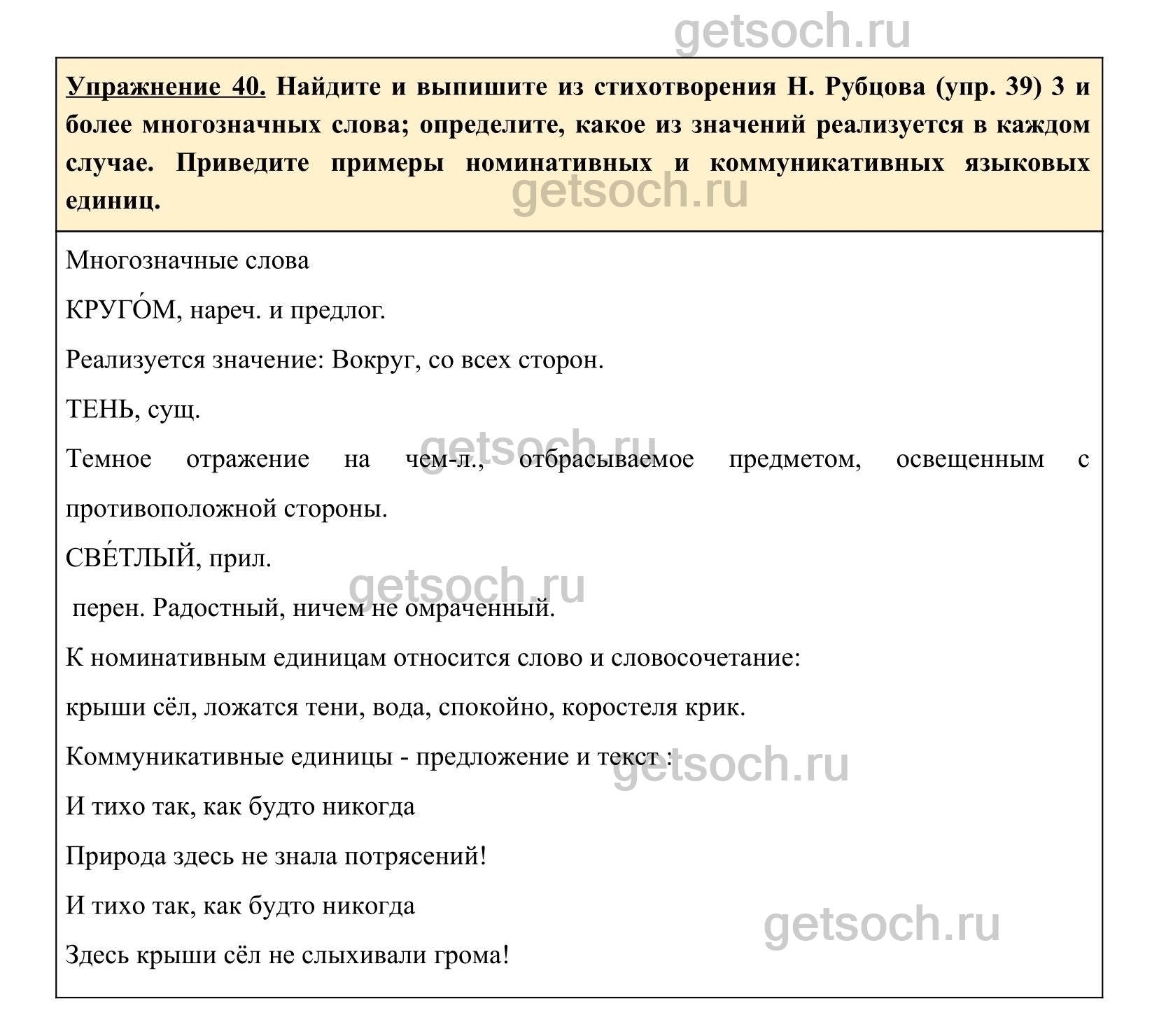 Упражнение 40. Найдите и выпишите из стихотворения Н. Рубцова (упр. 39) 3 и более многозначных слова; определите, какое из значений реализуется в каждом случае. Приведите примеры номинативных и коммуникативных языковых единиц.