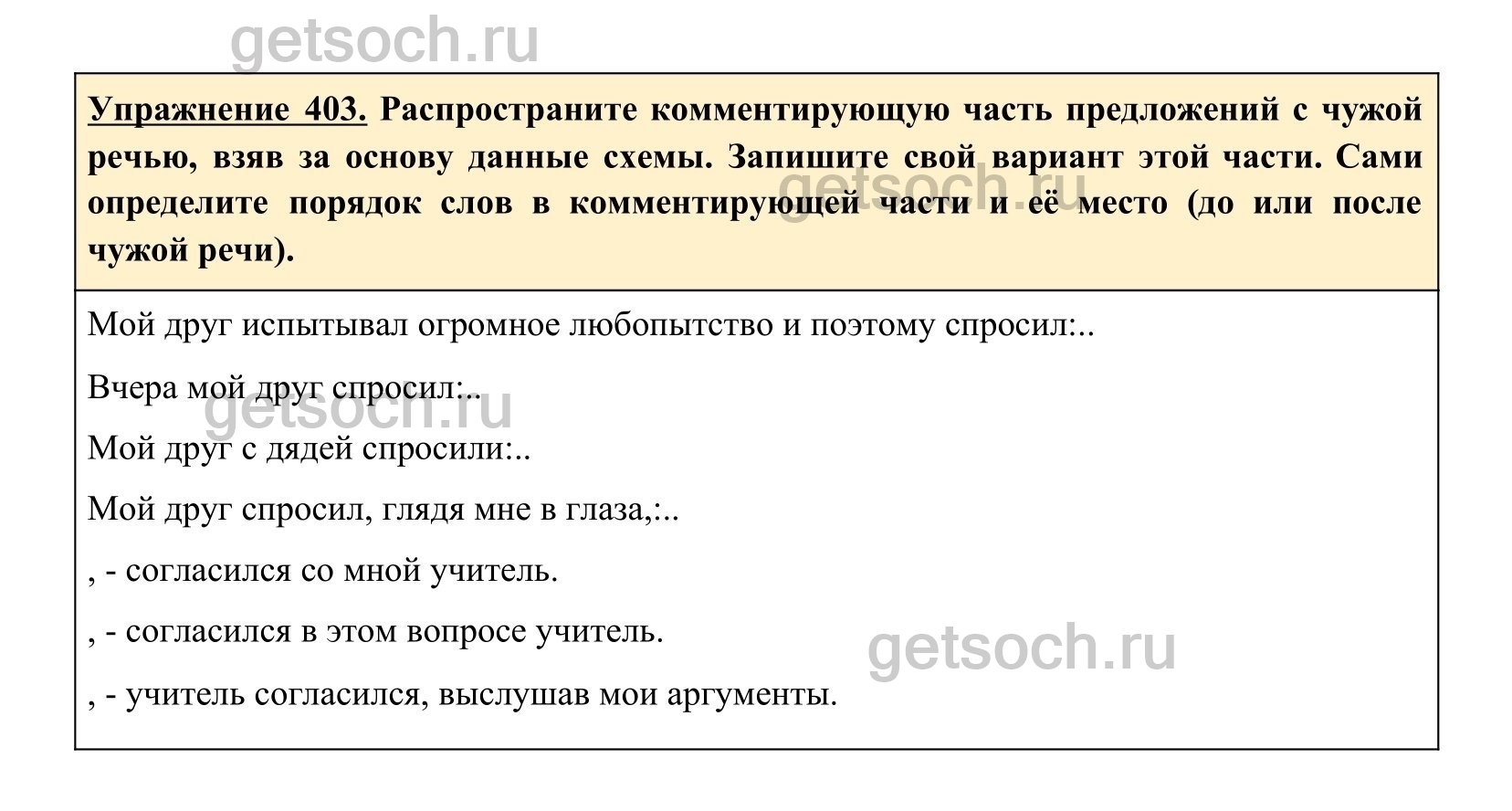 Рассмотрим ответы на Упражнение 403 из учебника по русскому языку для 8 класса Ладыженской