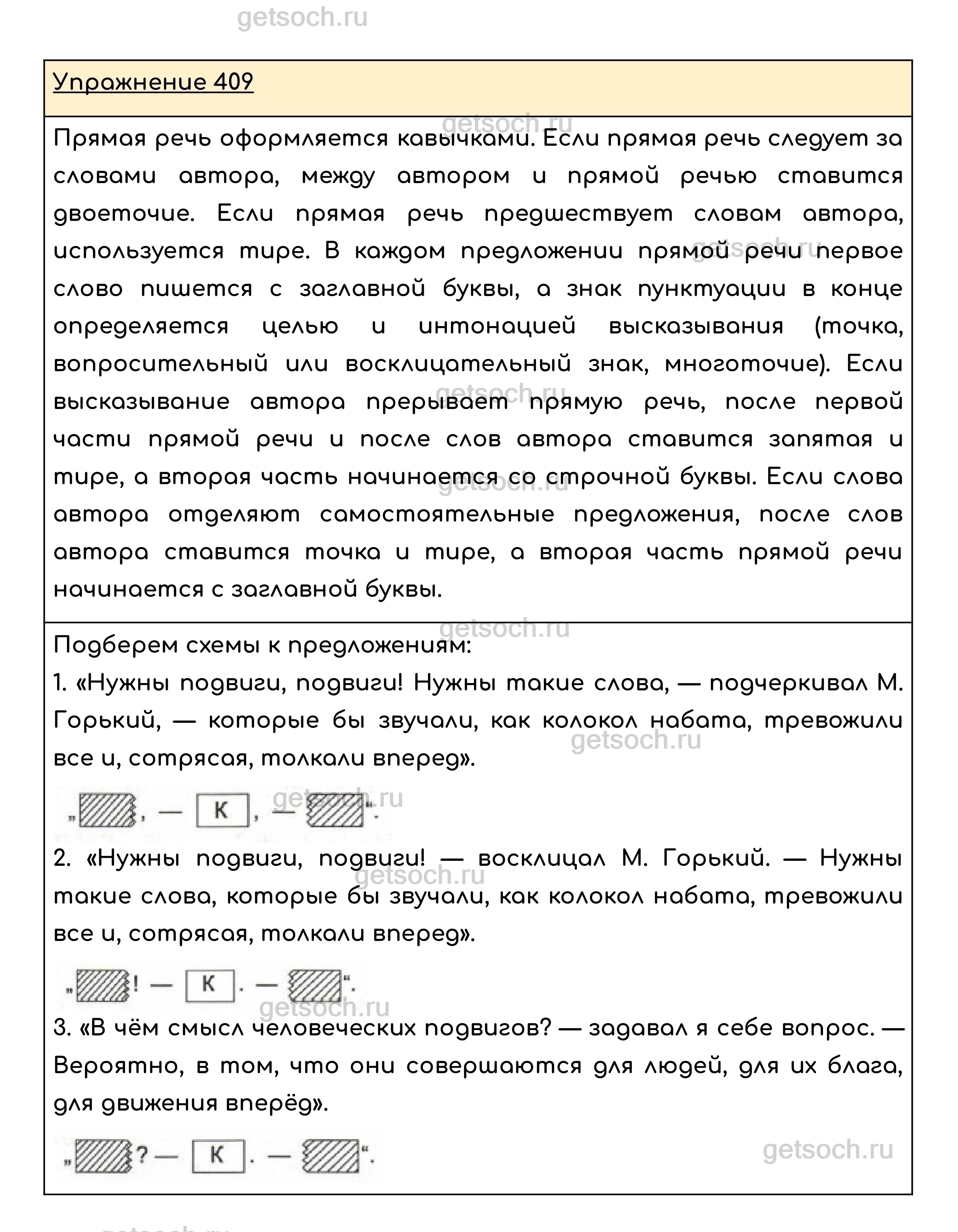 Упражнение 409. Запишите данные ниже предложения и к каждому из них подберите соответствующую схему.