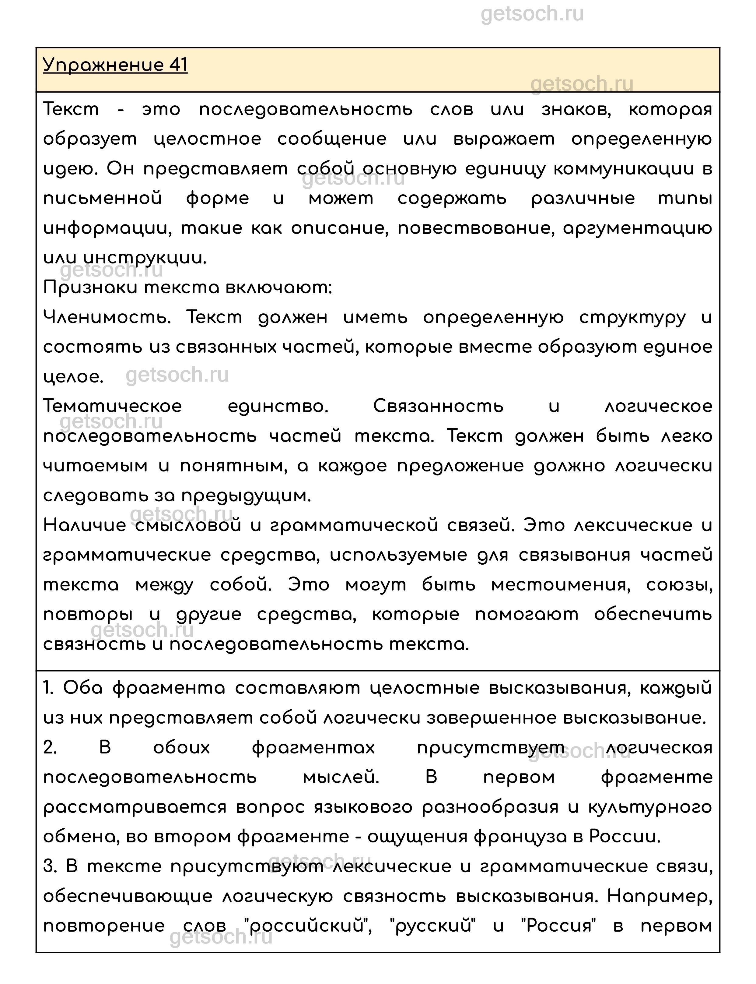 Рассмотрим ответы на Упражнение 41 из учебника по русскому языку для 8 класса Ладыженской