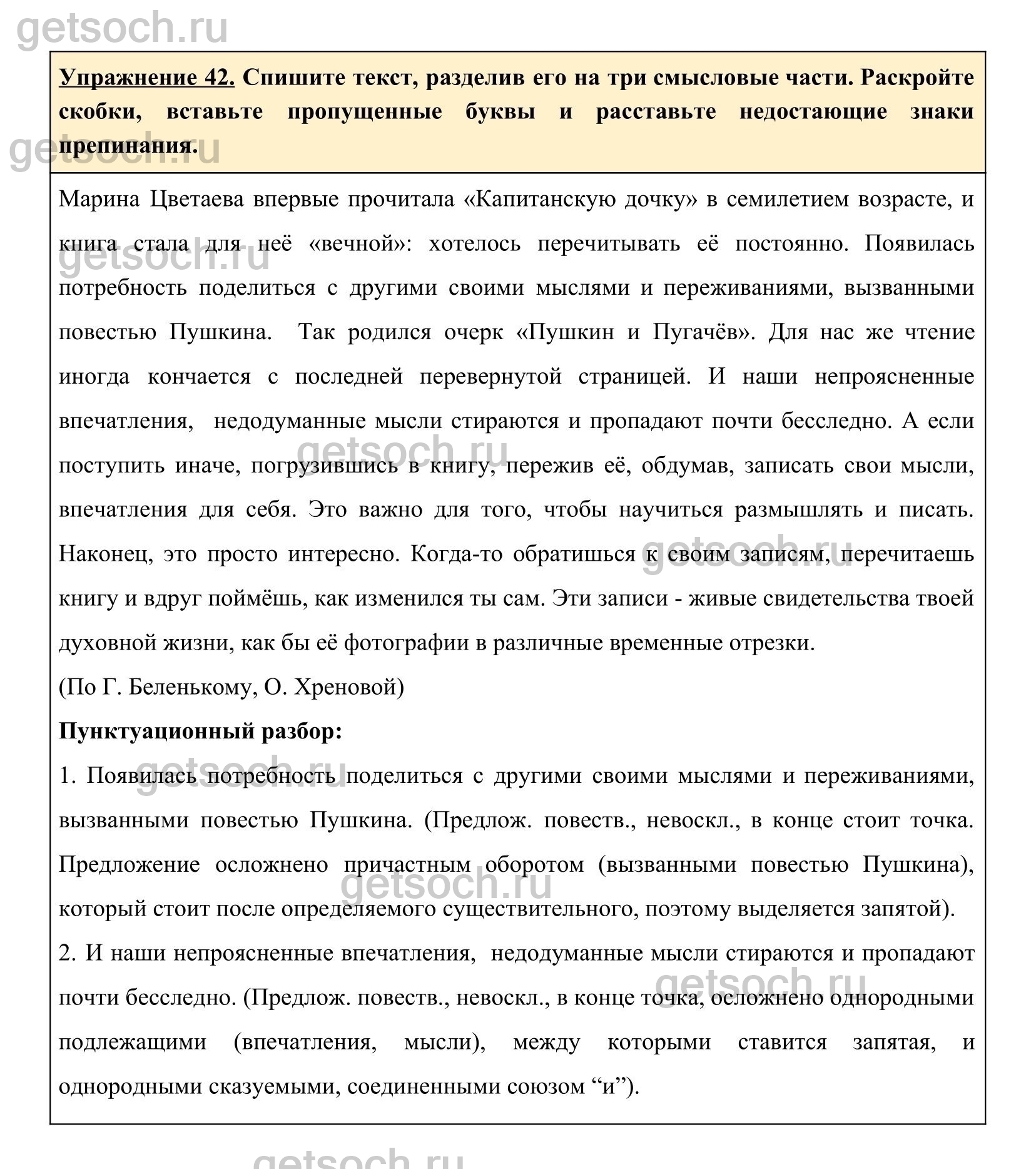 Упражнение 42. Спишите текст, разделив его на три смысловые части. Раскройте скобки, вставьте пропущенные буквы и расставьте недостающие знаки препинания.