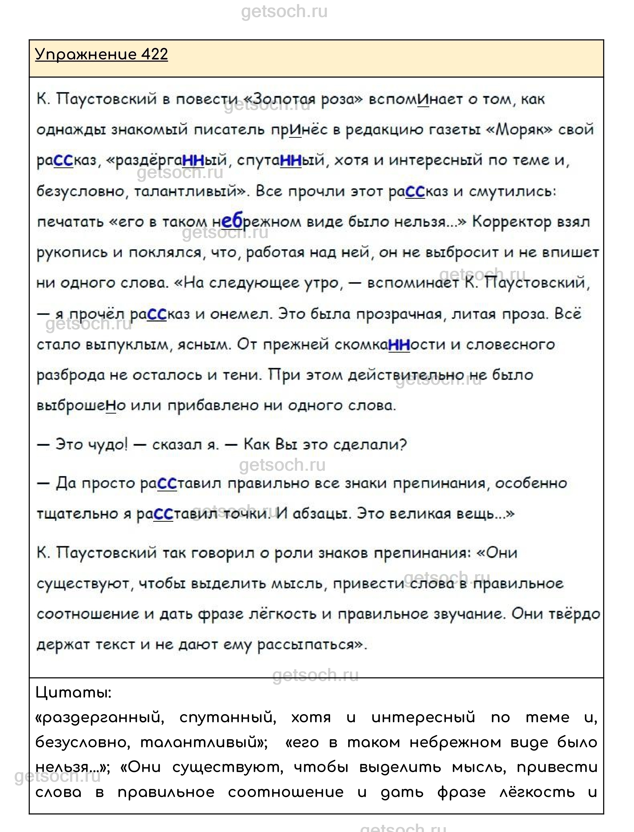 Рассмотрим ответы на Упражнение 422 из учебника по русскому языку для 8 класса Ладыженской