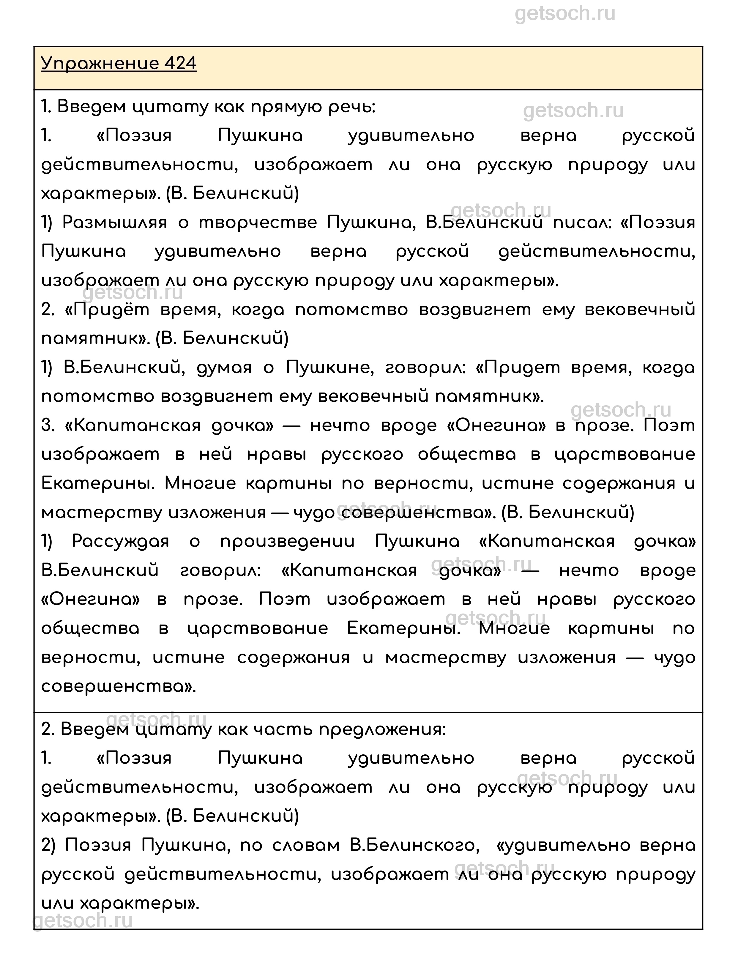 Рассмотрим ответы на Упражнение 424 из учебника по русскому языку для 8 класса Ладыженской