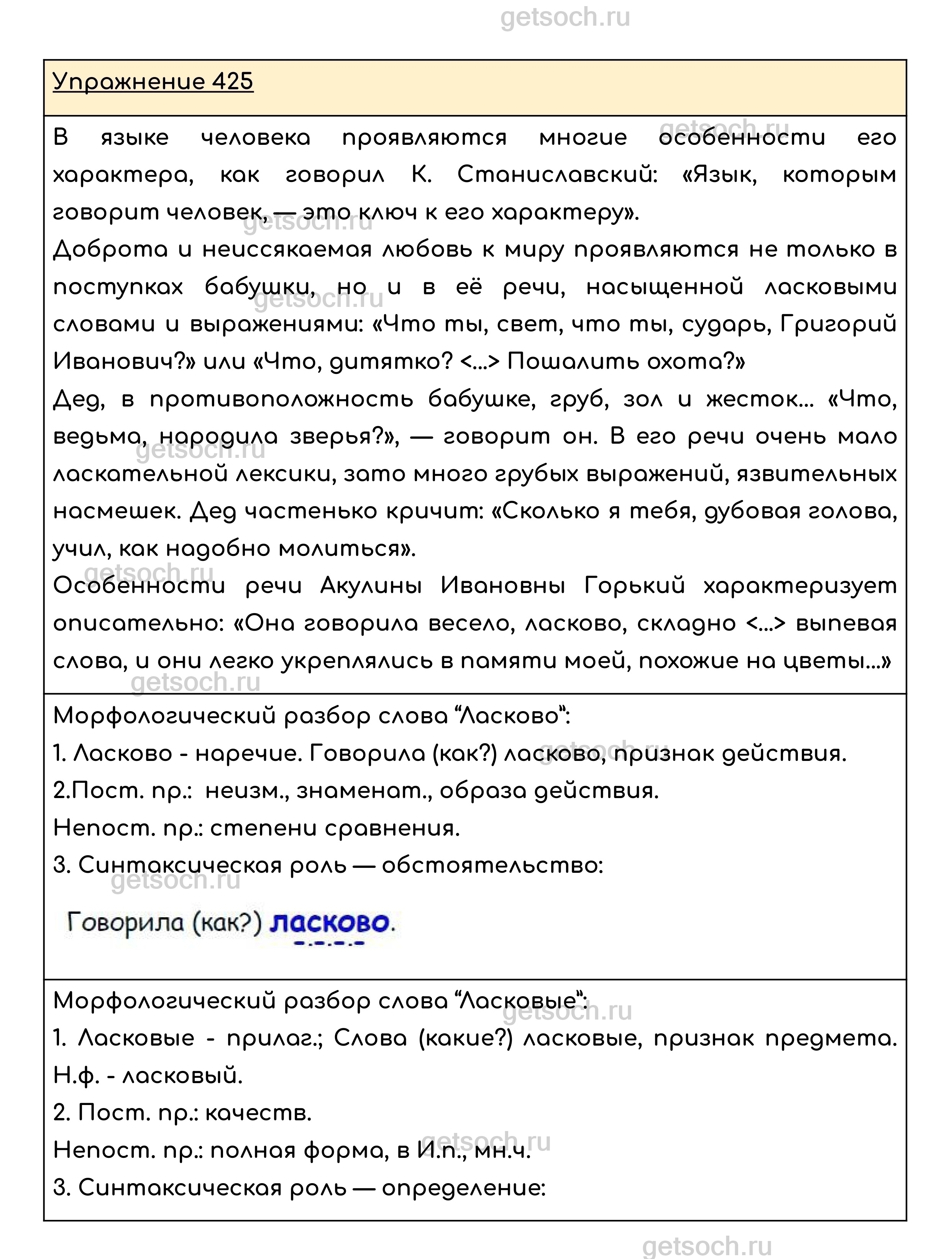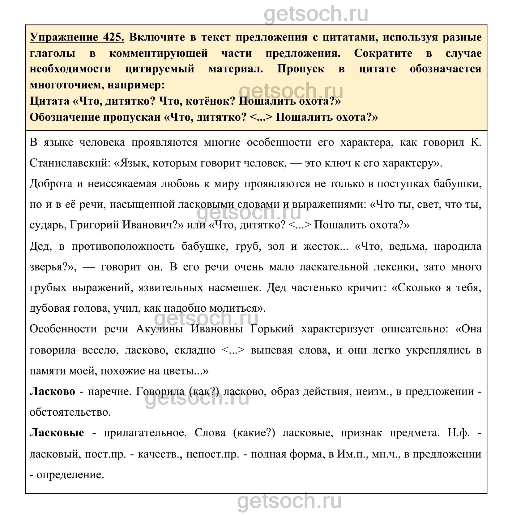 Рассмотрим ответы на Упражнение 425 из учебника по русскому языку для 8 класса Ладыженской