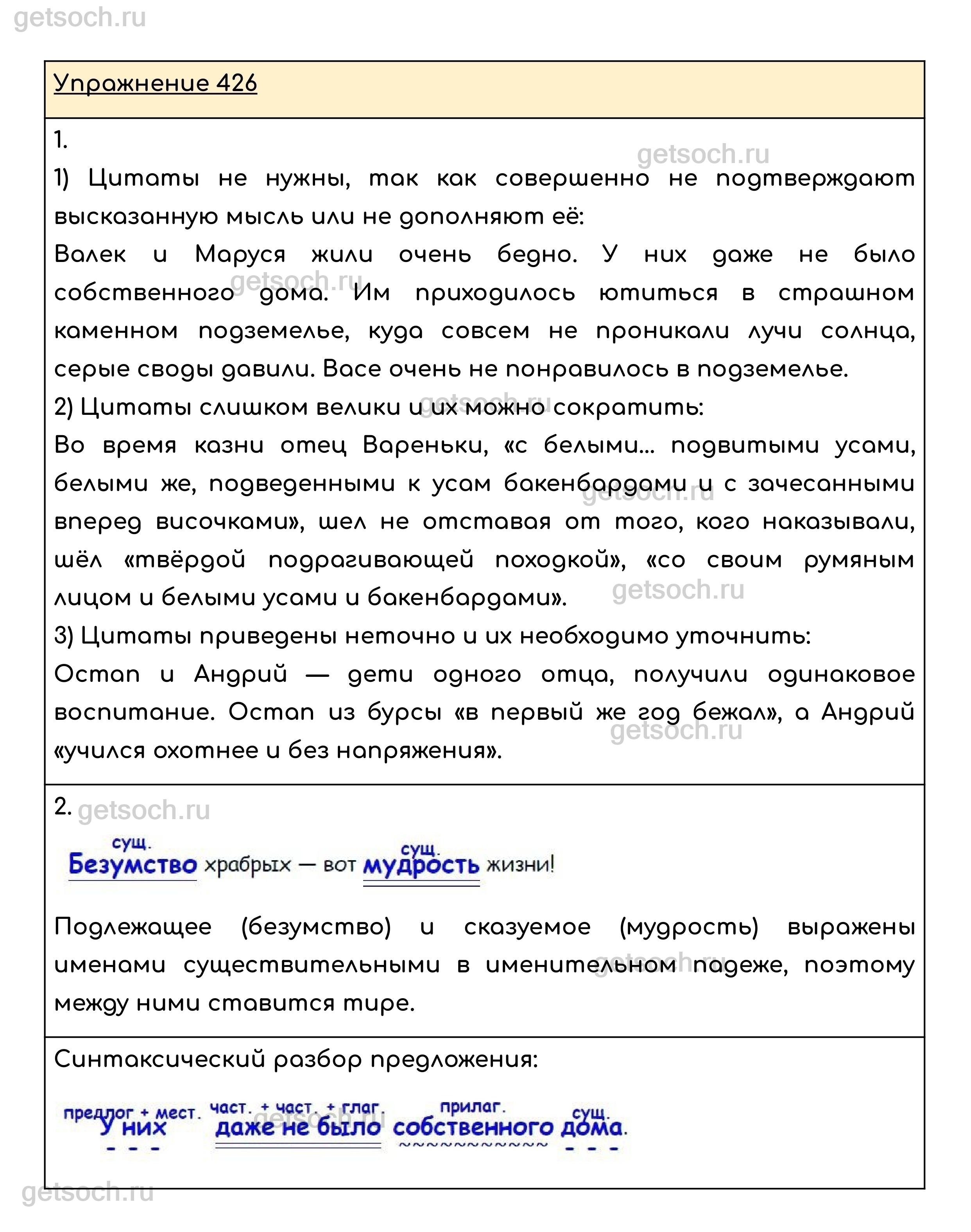 Рассмотрим ответы на Упражнение 426 из учебника по русскому языку для 8 класса Ладыженской