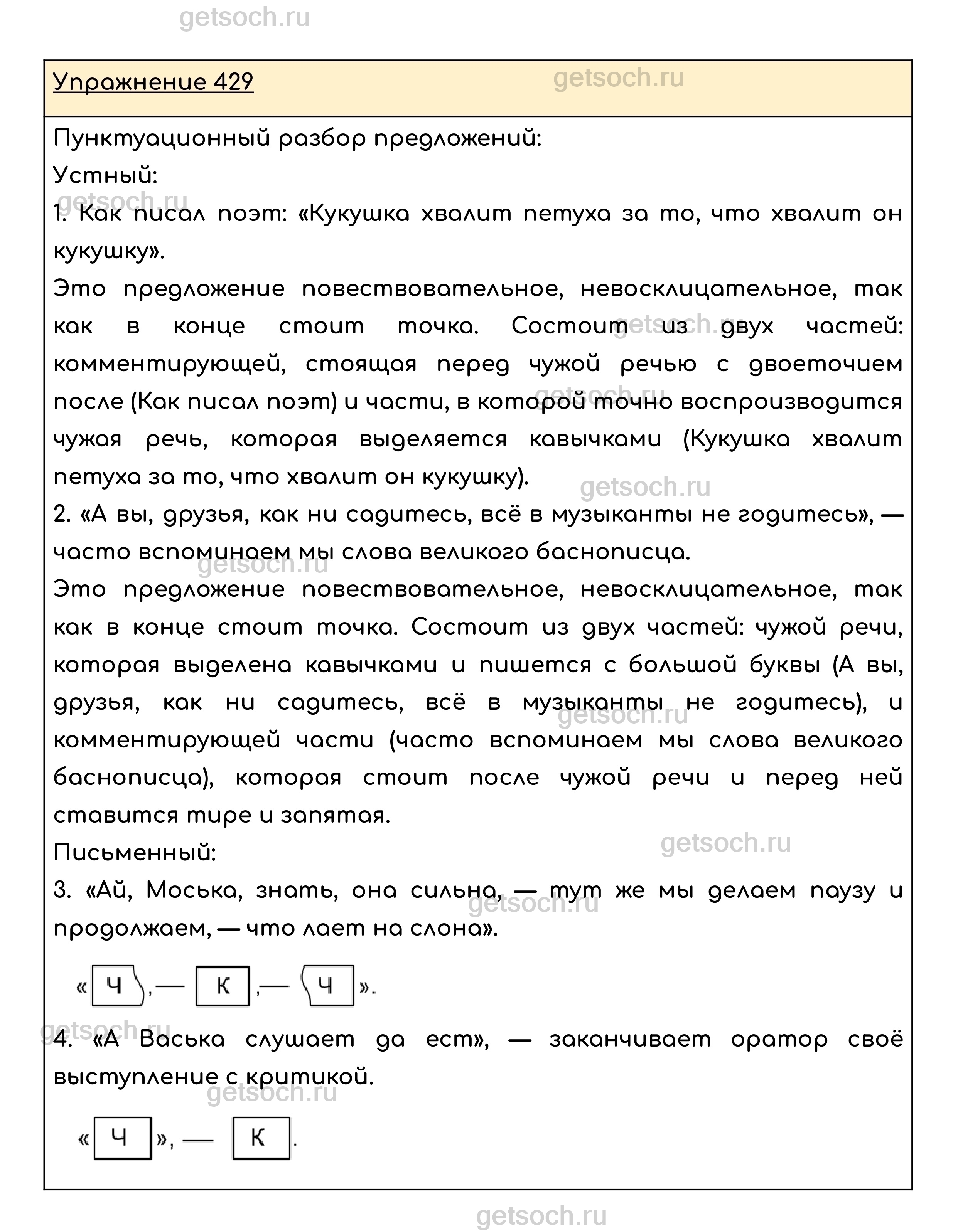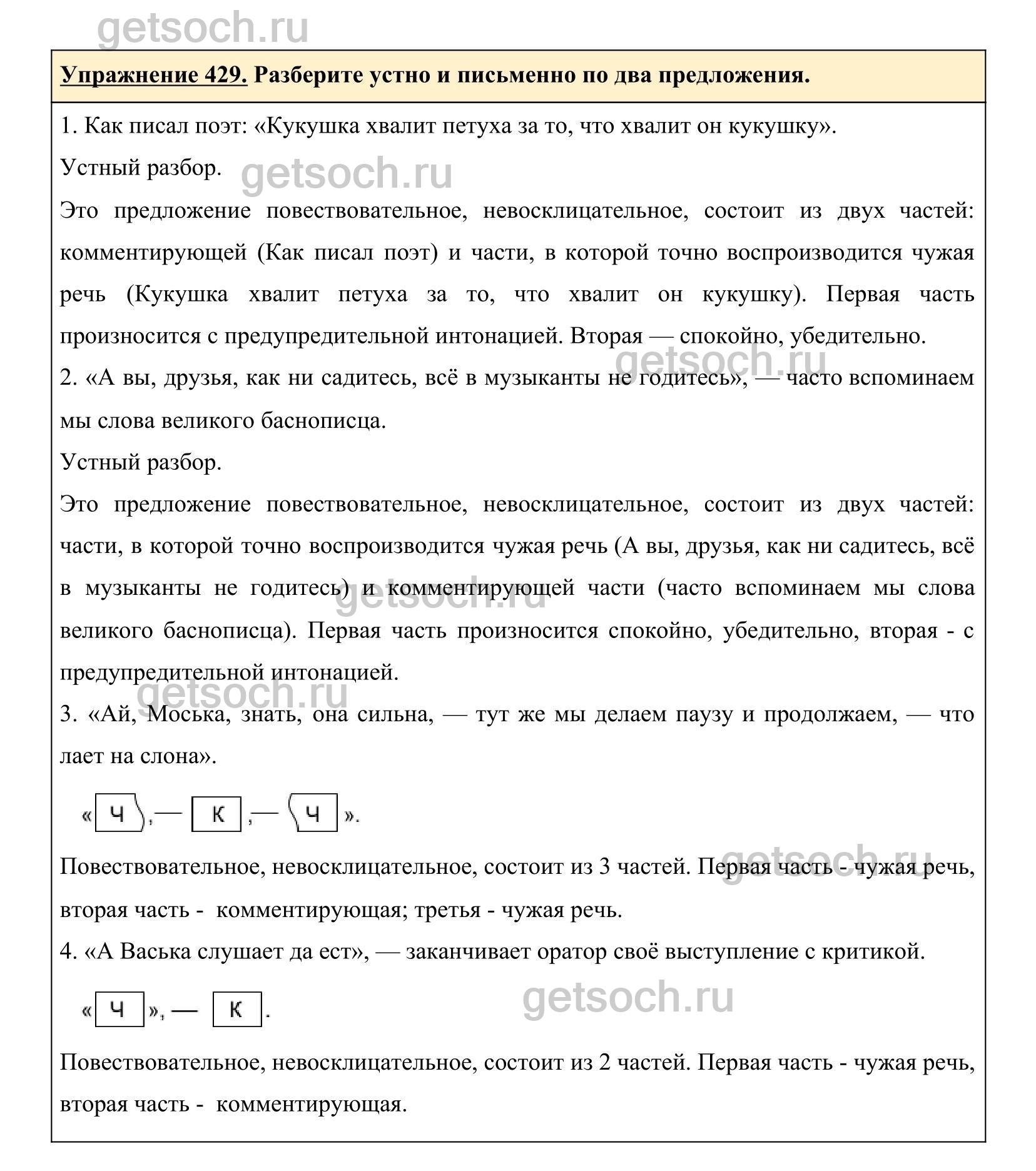 Рассмотрим ответы на Упражнение 429 из учебника по русскому языку для 8 класса Ладыженской