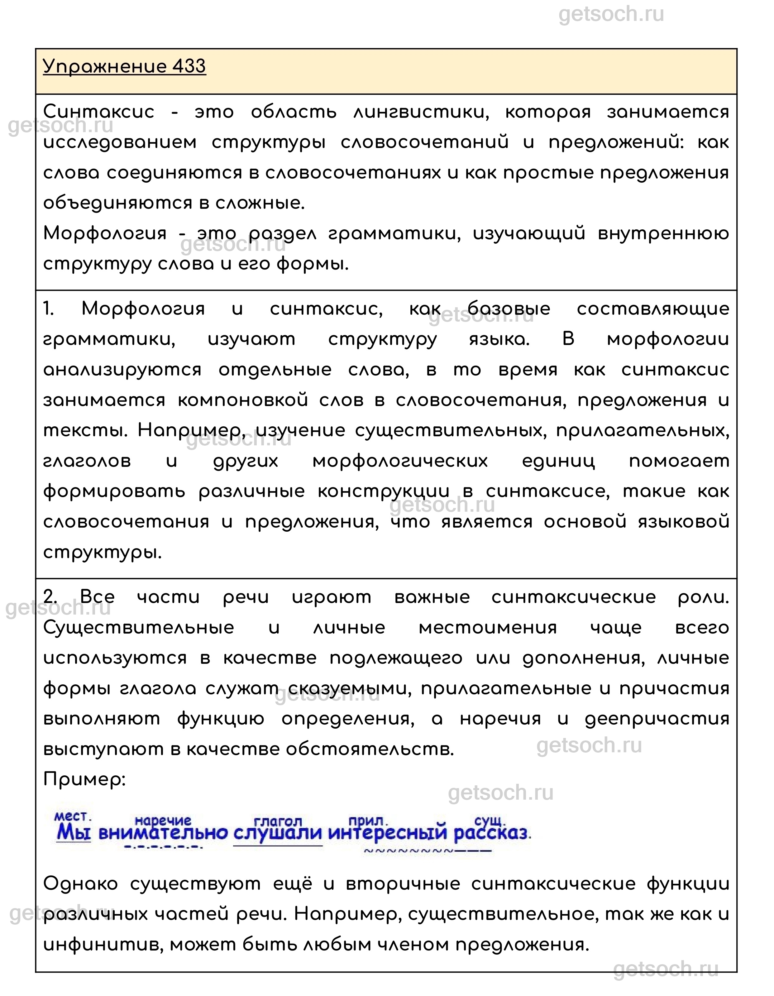Рассмотрим ответы на Упражнение 433 из учебника по русскому языку для 8 класса Ладыженской
