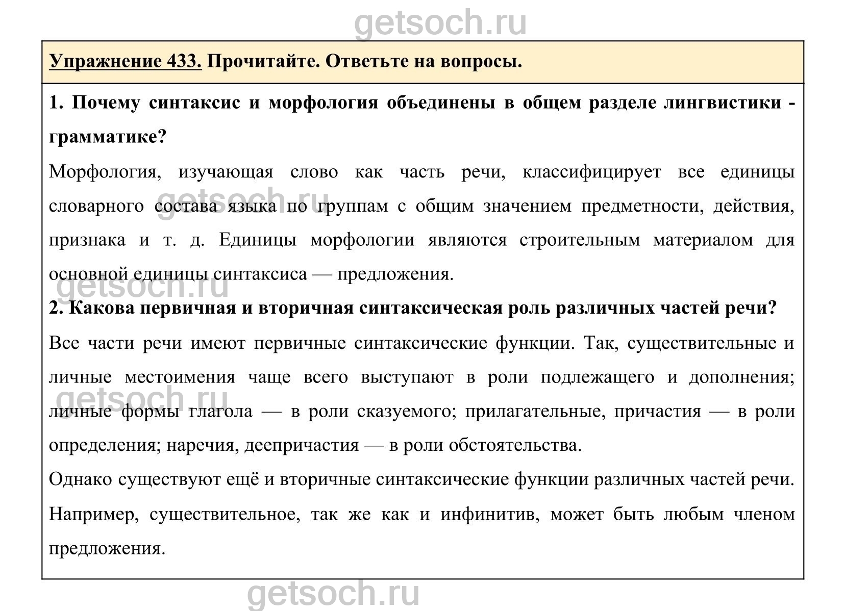 Упражнение 433. Прочитайте. Ответьте на вопросы.