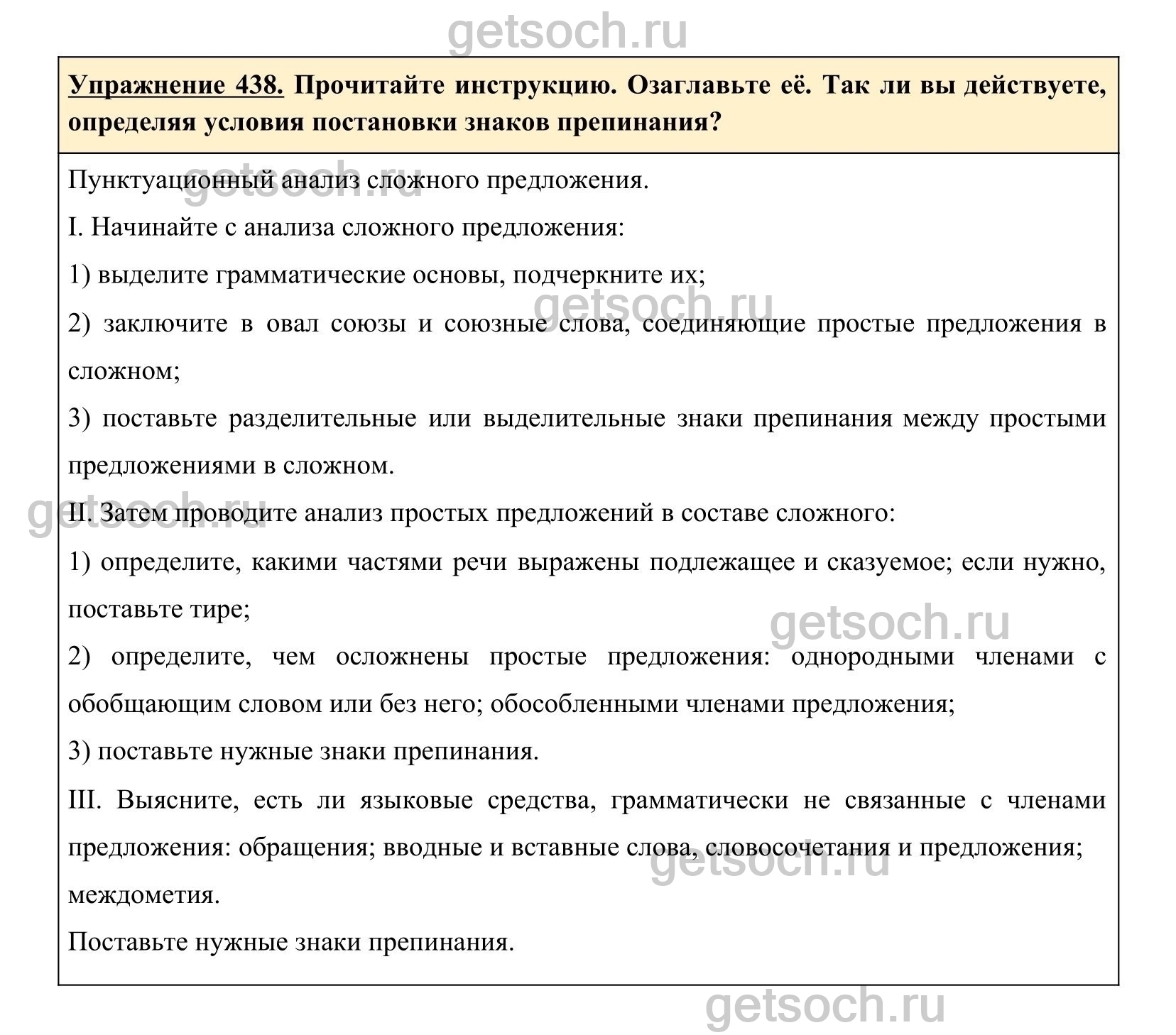 Рассмотрим ответы на Упражнение 438 из учебника по русскому языку для 8 класса Ладыженской